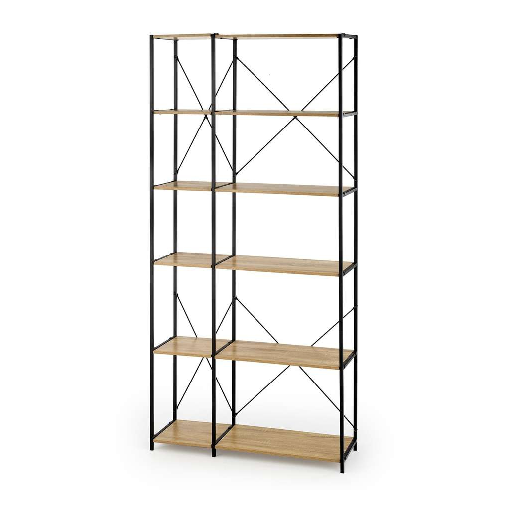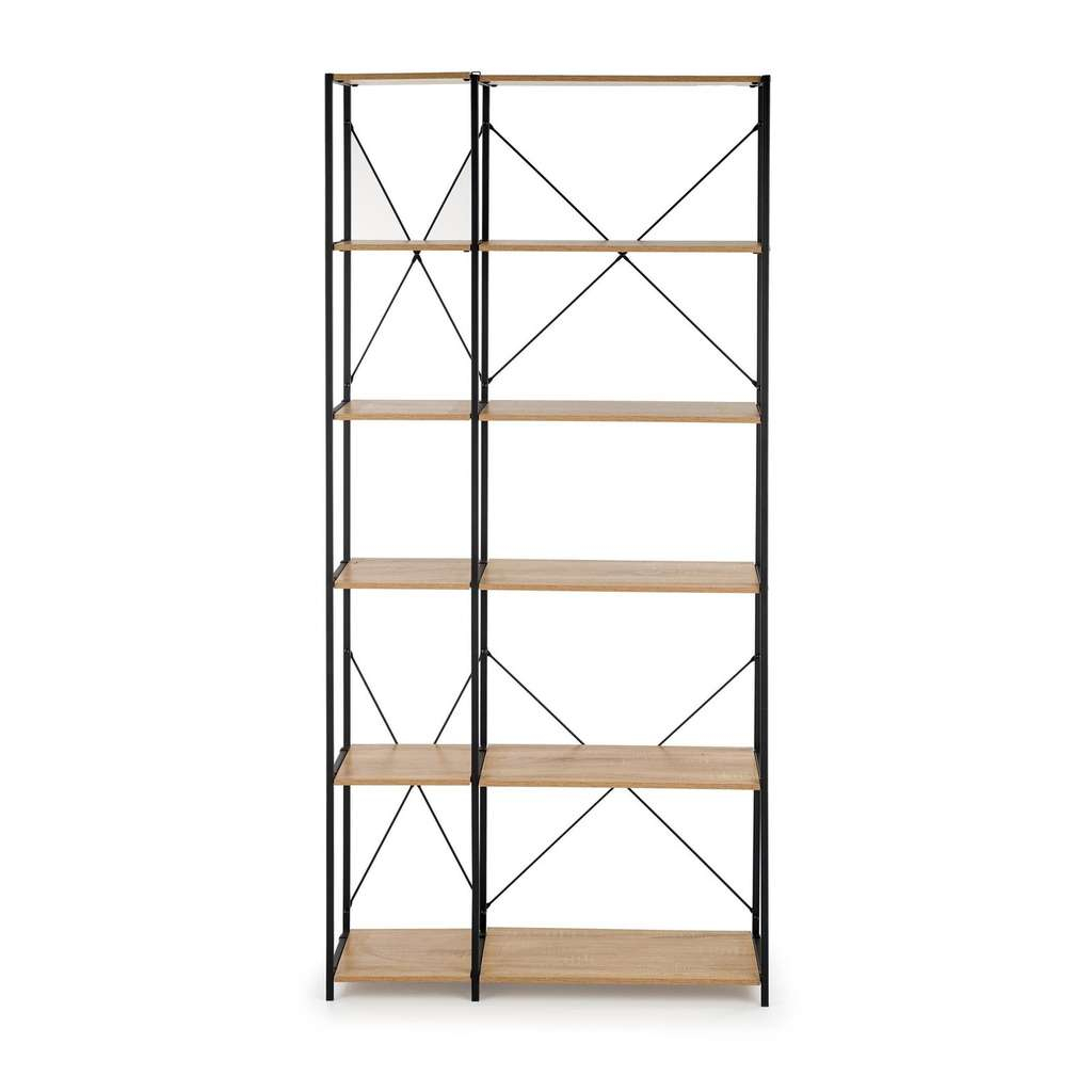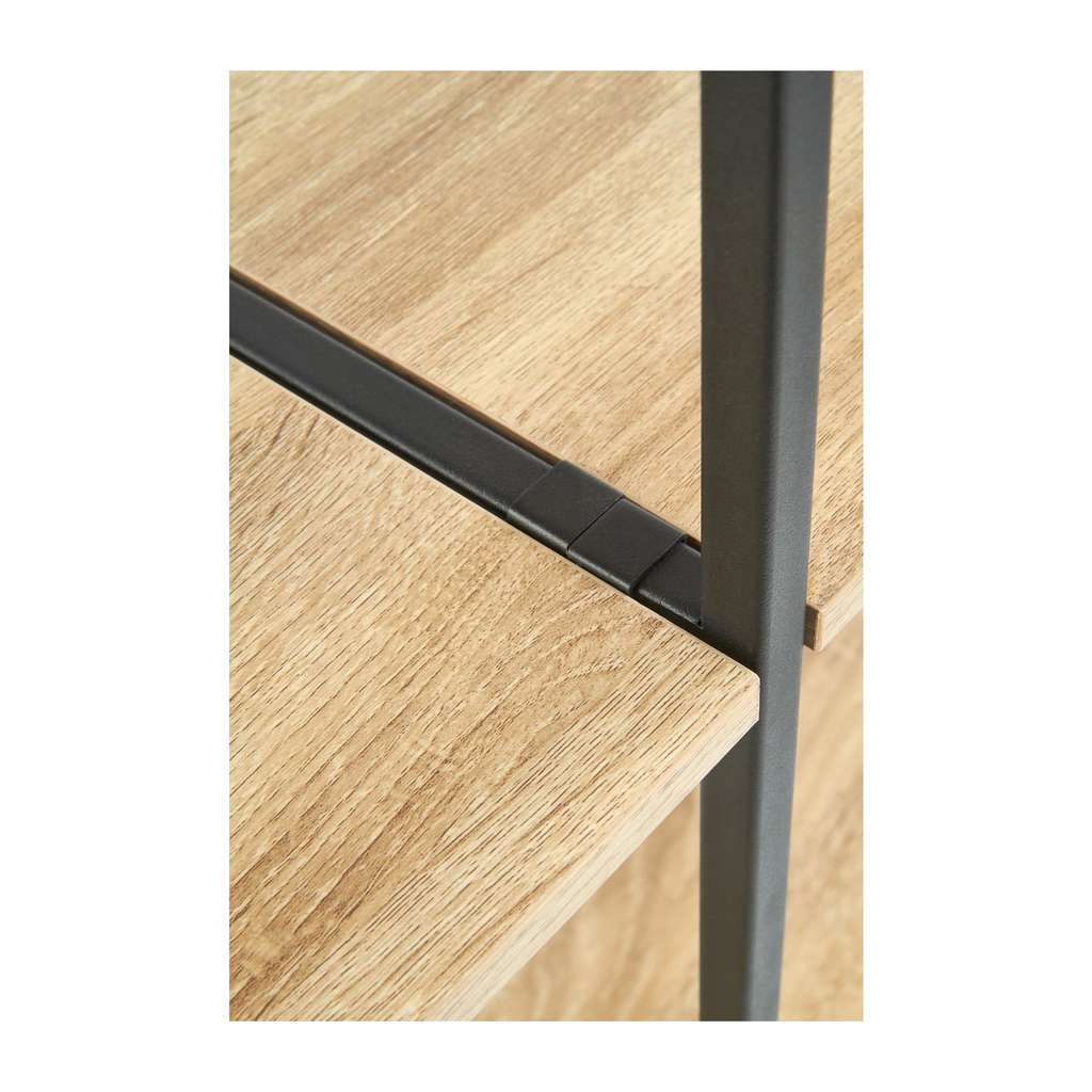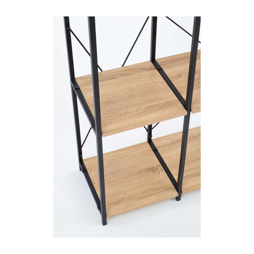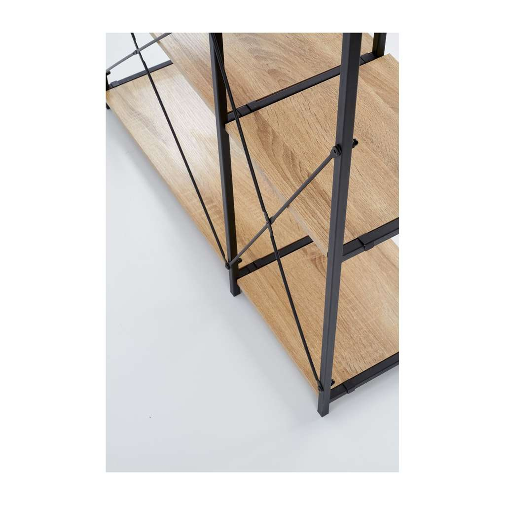 Jeho kompaktní rozměry 90 x 30 x 190 cm umožňují jeho využití i v menších prostorách, aniž by působil těžkopádně. Konstrukce z kombinace kovu a dřeva dodává regálu robustnost a zároveň estetický nádech, který skvěle zapadne do různých interiérů.