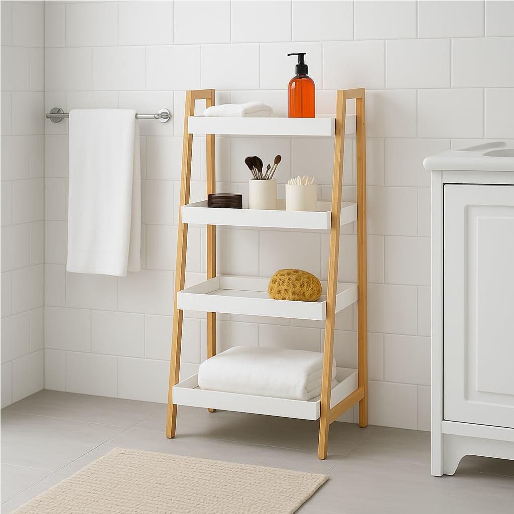 Tento regál je ideální volbou pro různé interiéry – vynikne v obývacím pokoji, ložnici, koupelně i předsíni. Díky menším rozměrům se snadno umístí i do menších prostor a nabízí praktické a stylové řešení pro organizaci domácnosti.