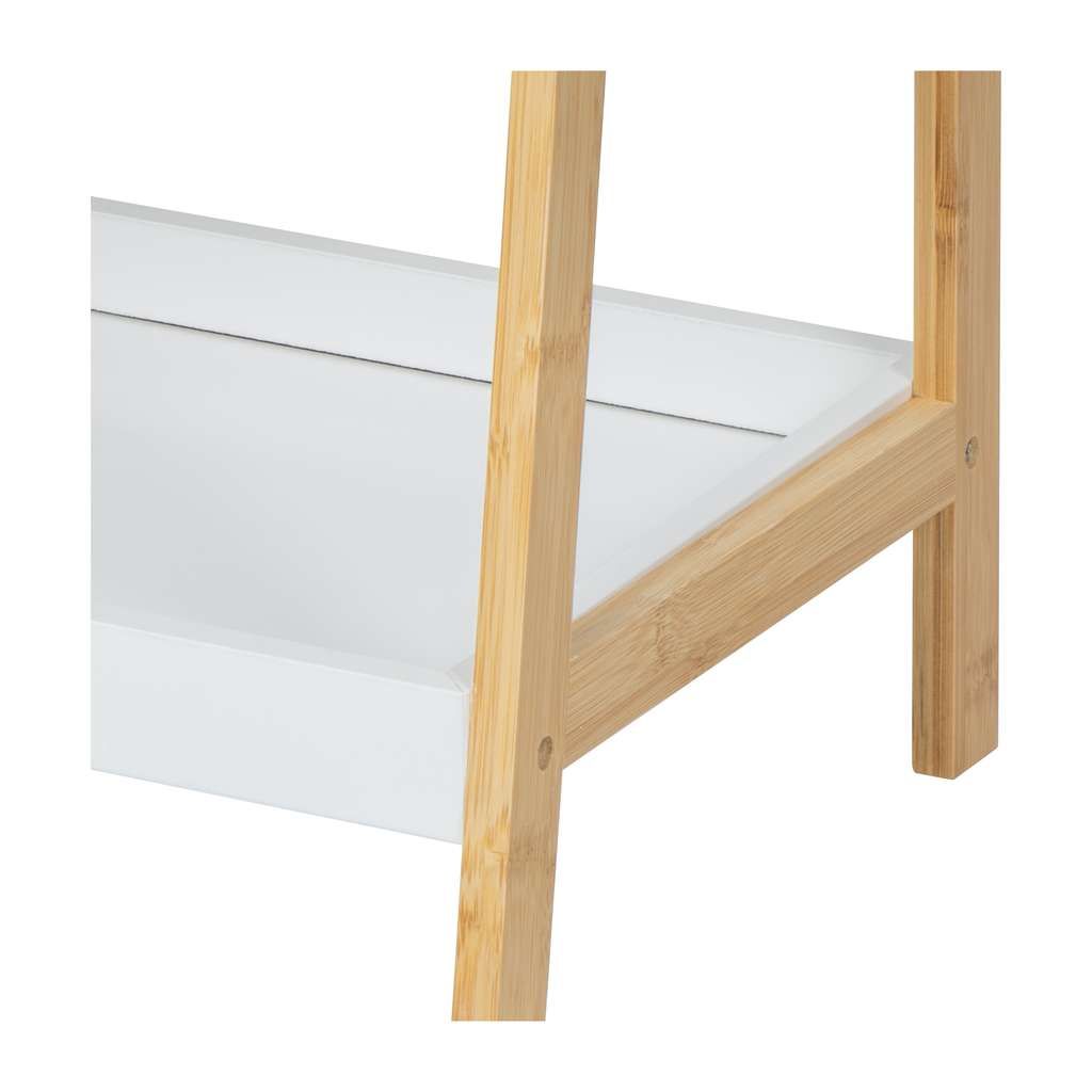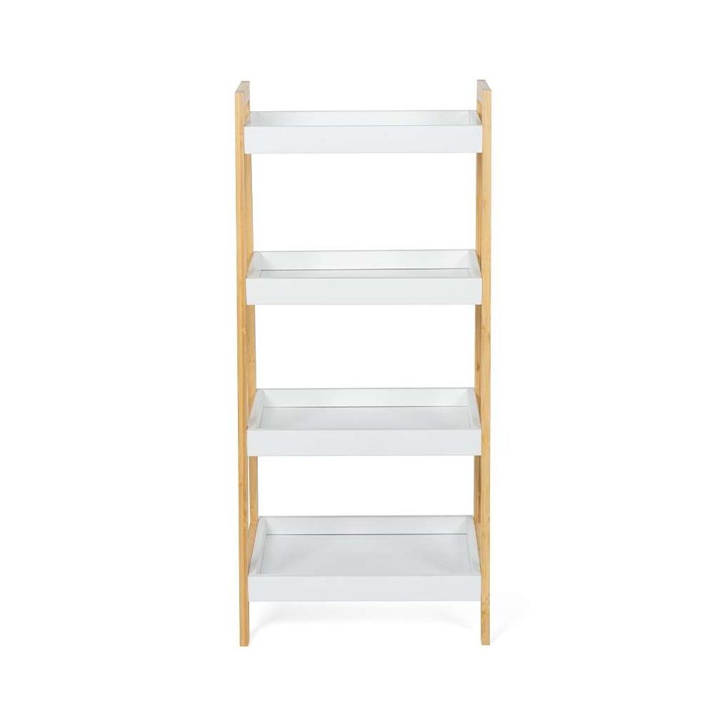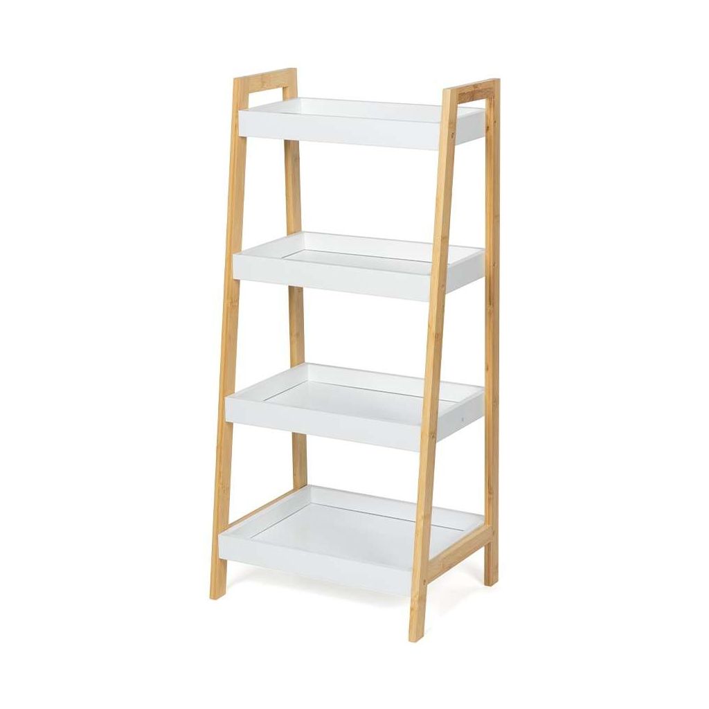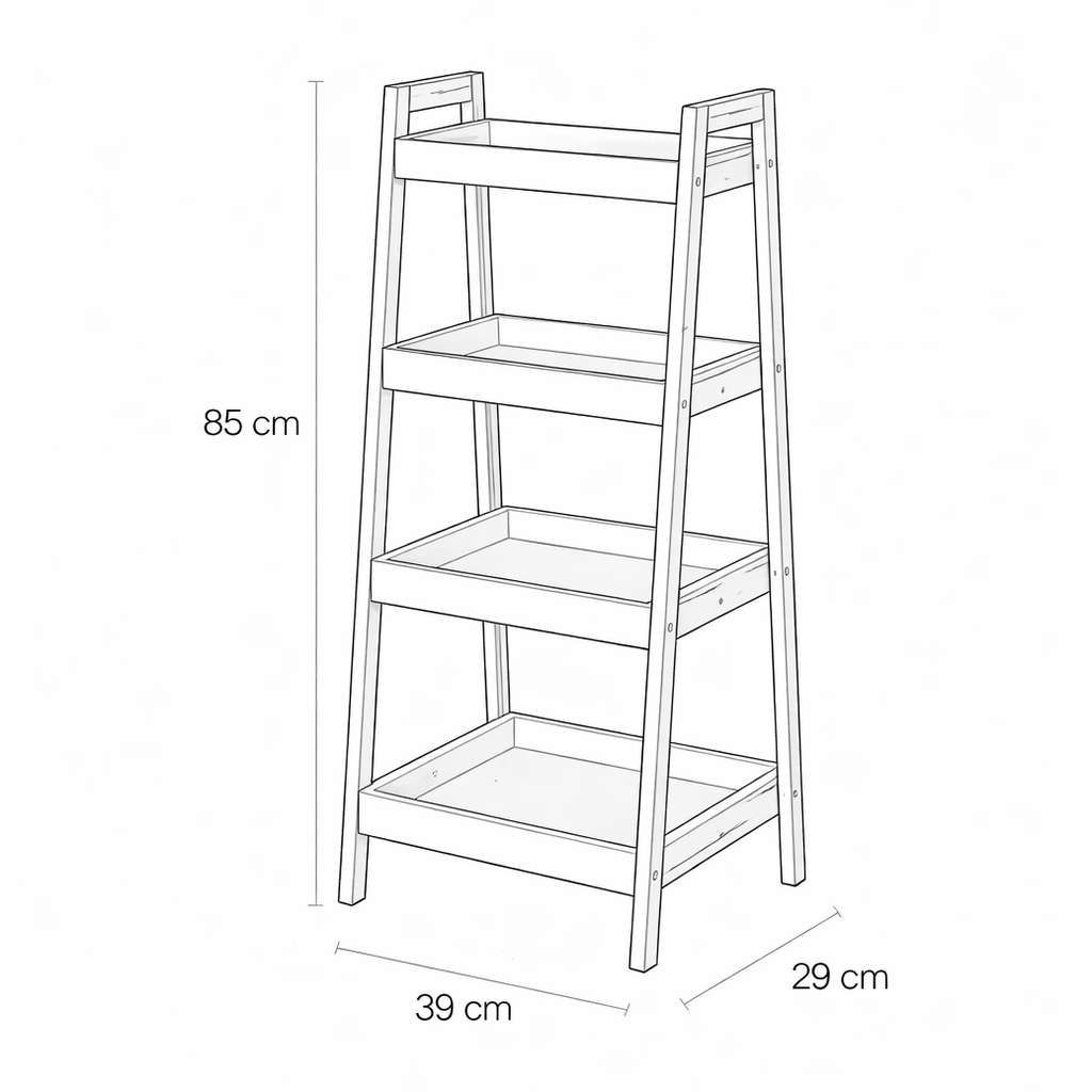 Regál Cotia je elegantní a funkční doplněk do domácnosti, který díky své zkosené konstrukci působí vzdušně a moderně. Jeho rám je vyroben ze stabilního dřeva, které zaručuje pevnost a dlouhou životnost. Čtyři police poskytují dostatek prostoru pro uložení knih, dekorací, rostlin nebo jiných předmětů, přičemž jejich zvýšené okraje zabraňují posunu věcí a případnému vypadnutí.