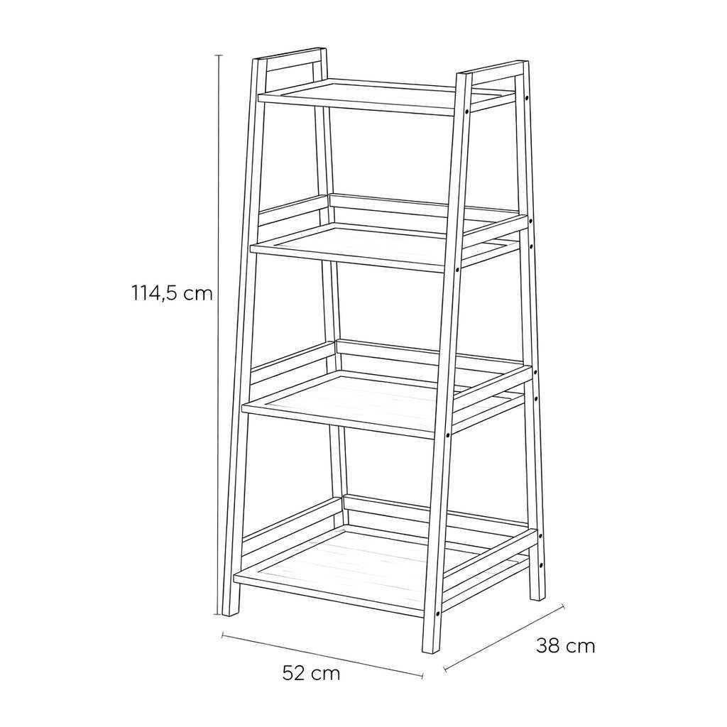 Design regálu je jednoduchý a funkční, s několika prostornými policemi, které nabízejí dostatek úložného prostoru pro knihy, dekorace, rostliny nebo další drobné předměty. Celá konstrukce působí lehce a moderně, což doplní každý interiér bez zatížení prostoru.