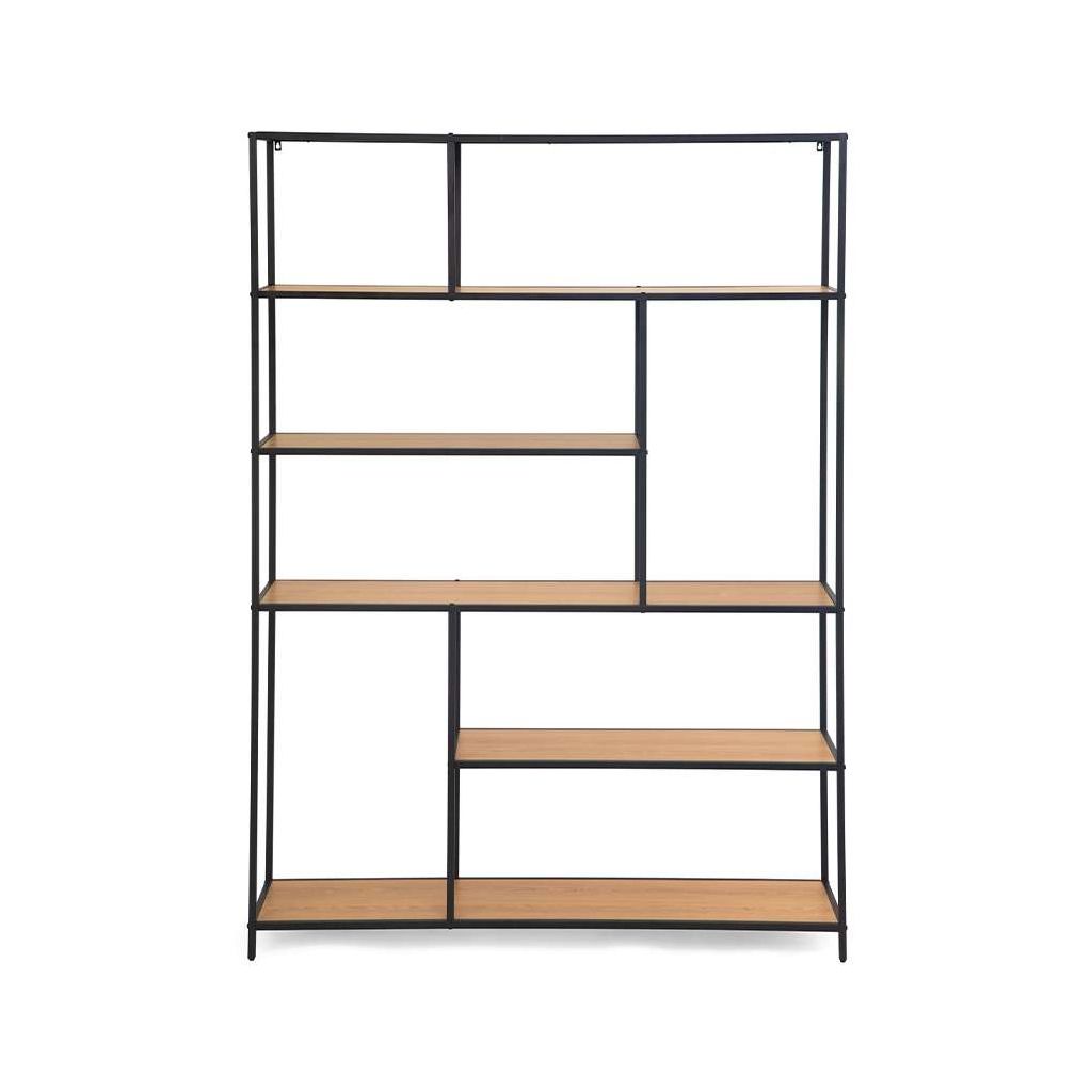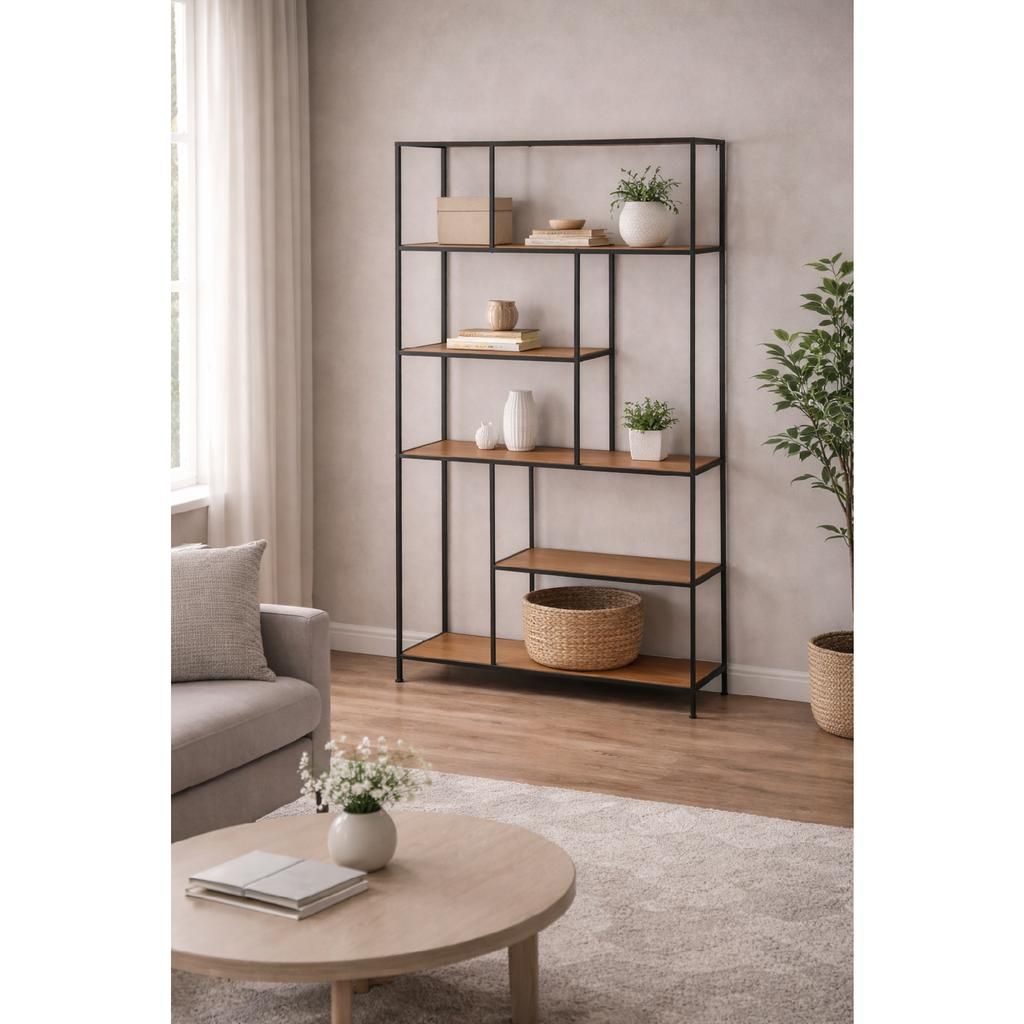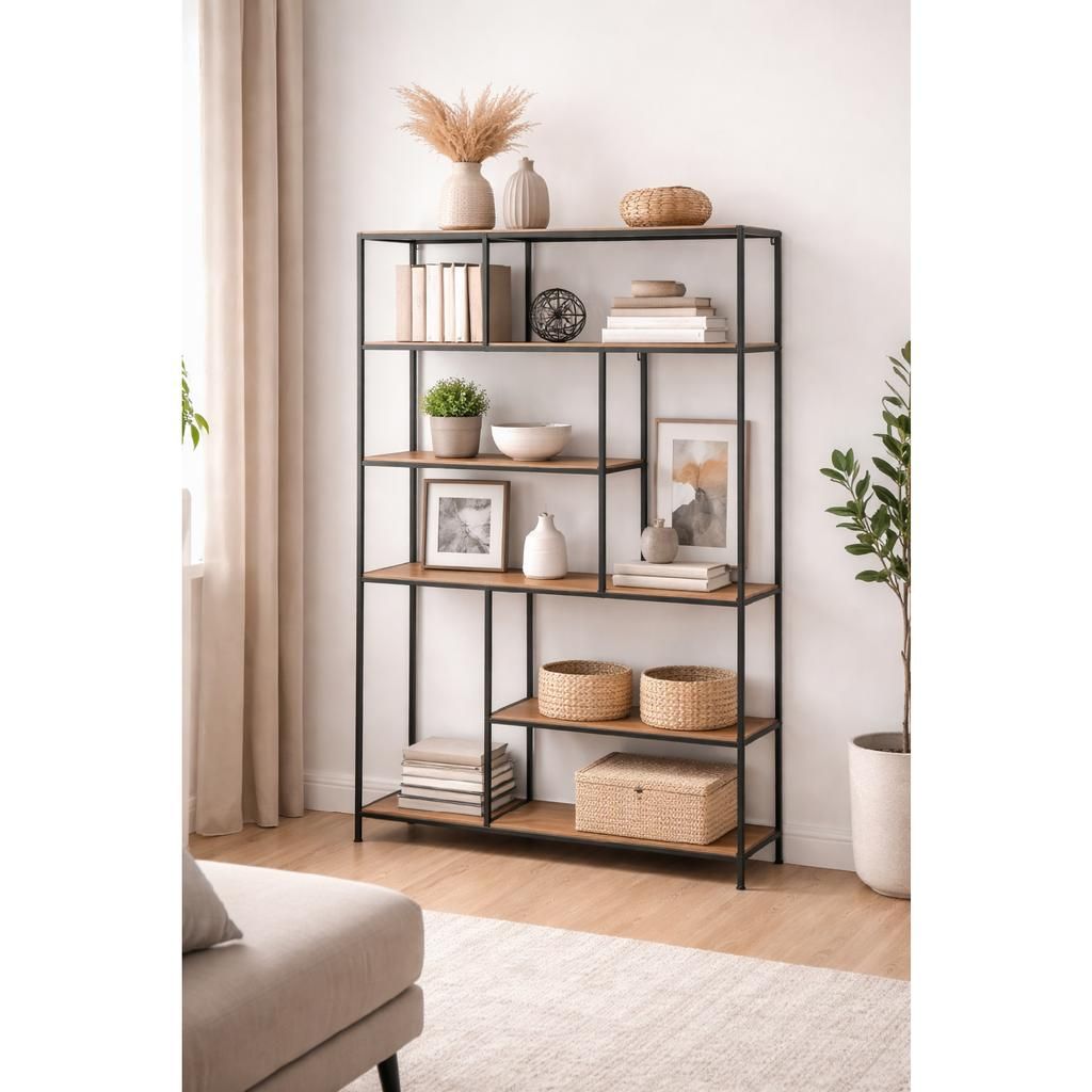 Otevřený design regálu umožňuje volný průchod světla, což pomáhá prostoru působit vzdušně a nezatíženě. Je ideální volbou do obývacího pokoje, pracovny nebo předsíně, kde poslouží jako úložné místo pro knihy, dekorace či jiné doplňky.