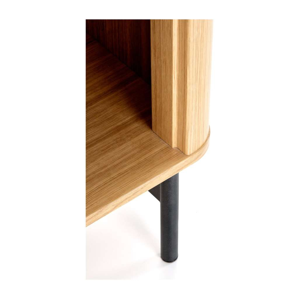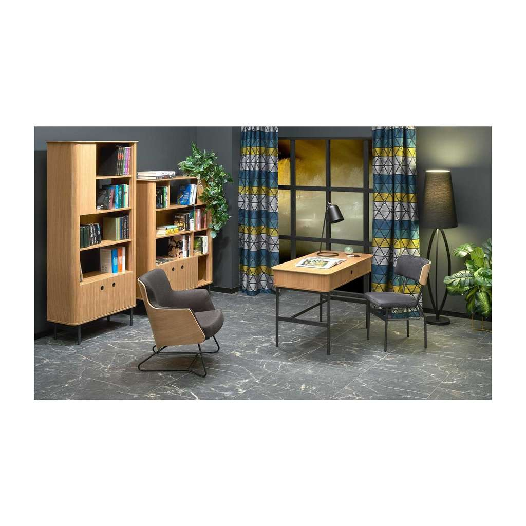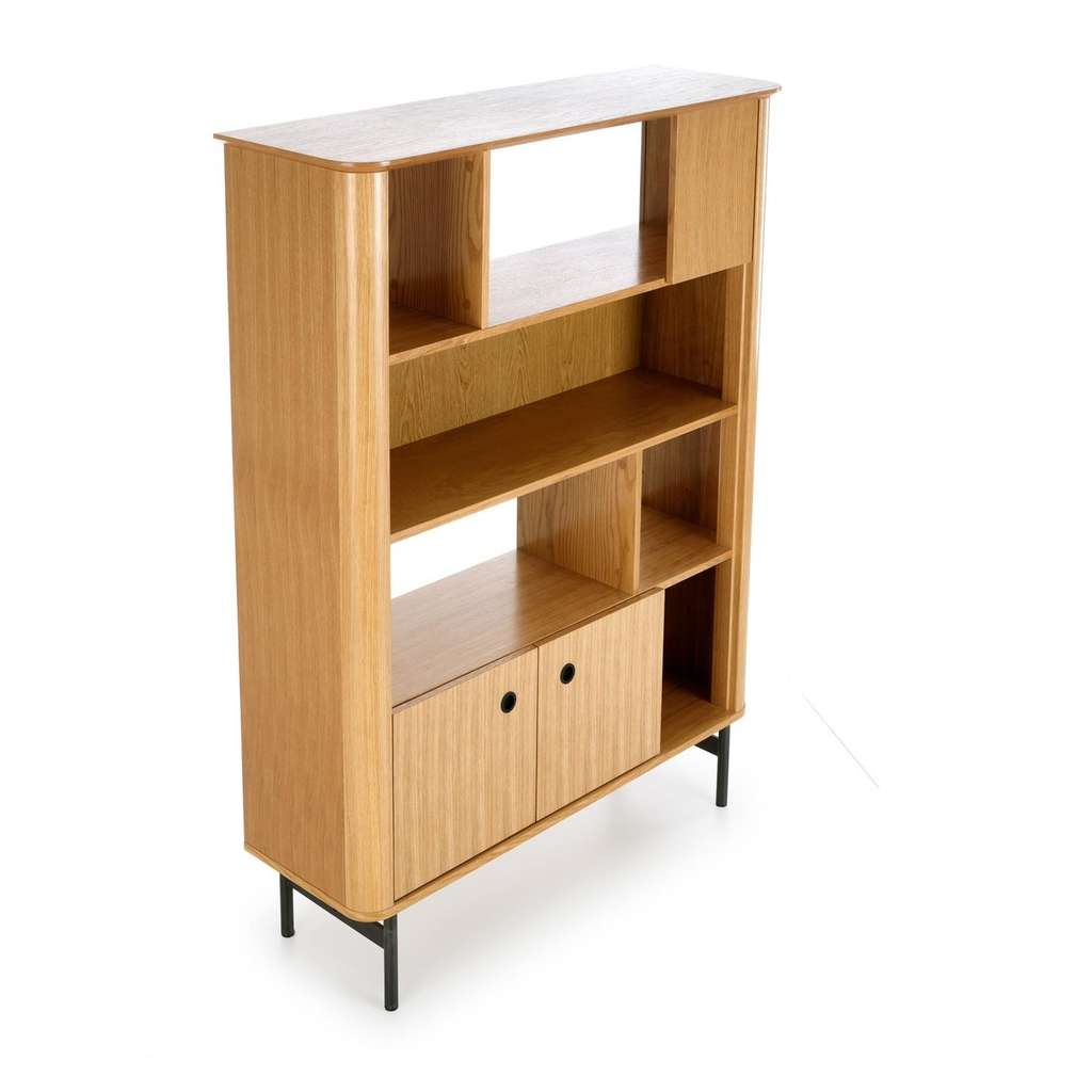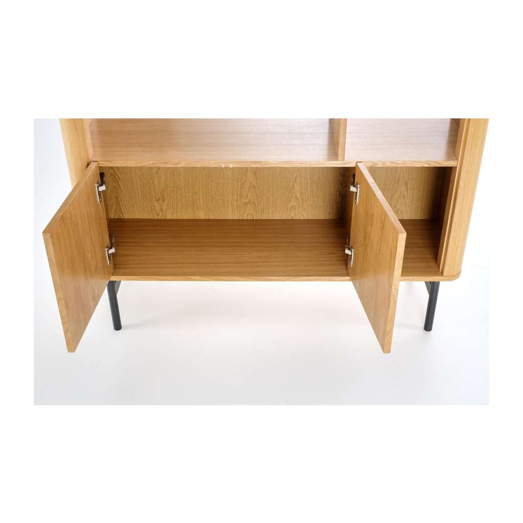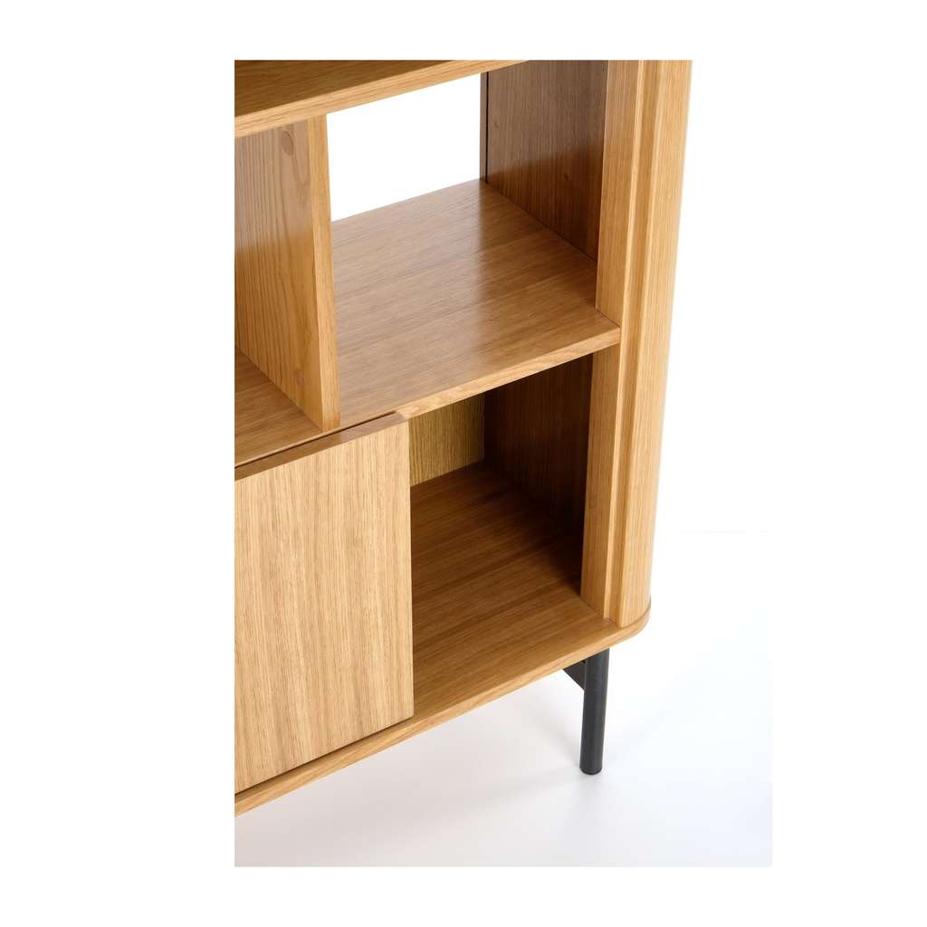Jeho promyšlený design s otevřenými i uzavřenými policemi vám umožní efektivně uspořádat knížky, dekorace nebo méně viditelné předměty. Stabilní konstrukce na kovových nohách zároveň zajišťuje dlouhou životnost a odolnost regálu.