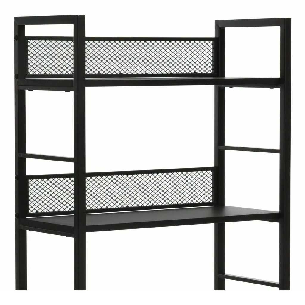 Kostra regálu je z černého kovu. To platí i o mřížkách, které jednak ozvláštní jednoduchou konstrukci regálu, jednak předejdou sklouznutí věcí z poliček dozadu. Police jsou pak vyrobené z laminované dřevotřísky.