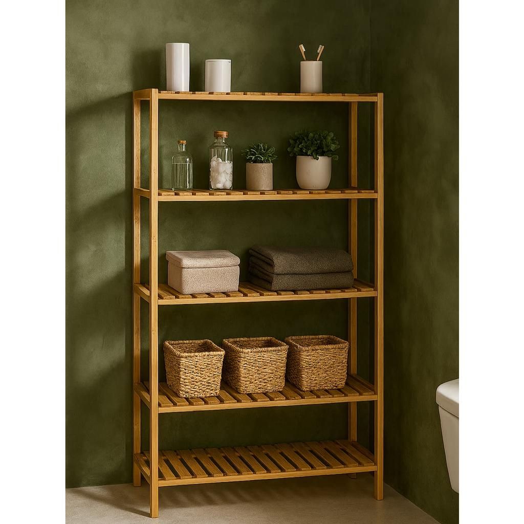 S pěti policemi vám regál poskytne dostatek místa pro uložení dekorací, knih, ručníků nebo dalších věcí, které chcete mít přehledně uspořádané a stále po ruce. Otevřená konstrukce přispívá k dobré cirkulaci vzduchu a zároveň vytváří lehký vizuální dojem.