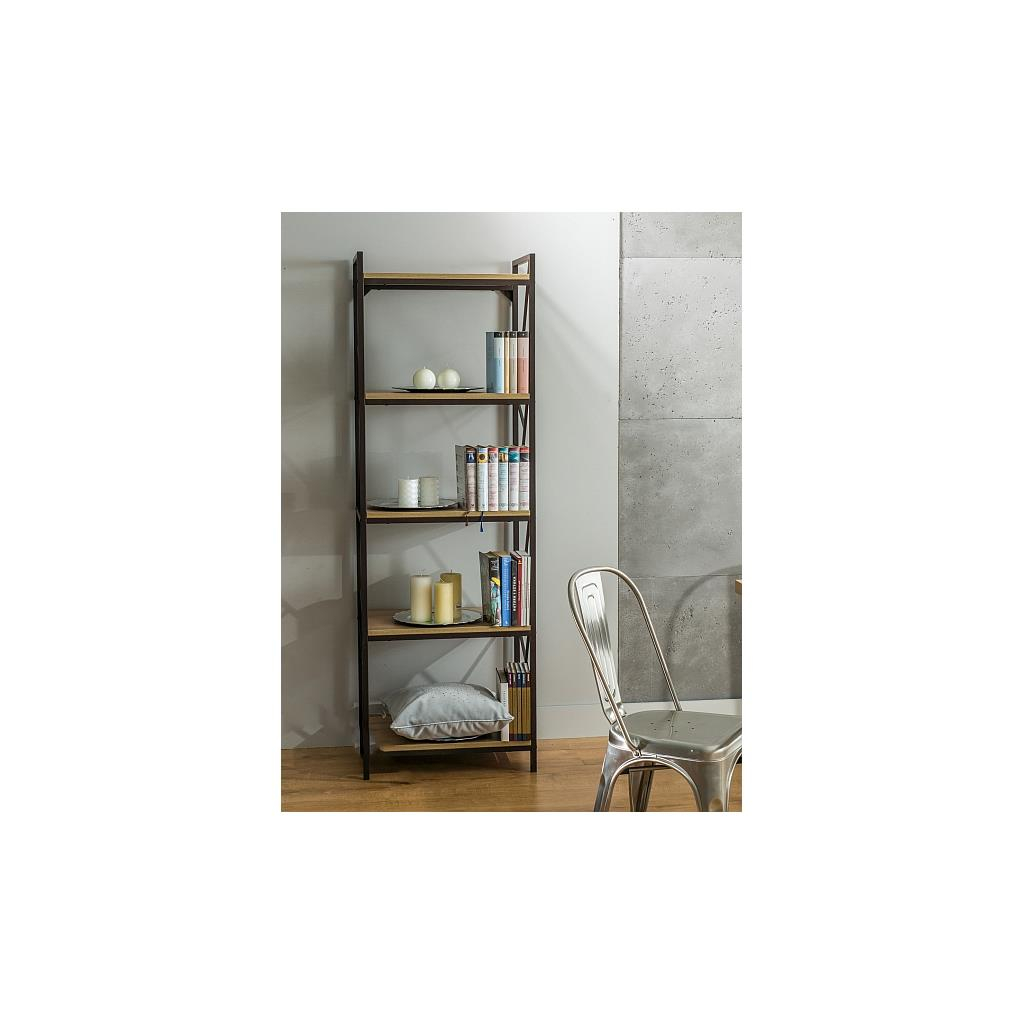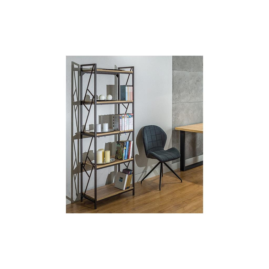 Konstrukce regálu je vyrobená z pevného kovu v tmavě hnědé barvě a je doplněná o police z dřevovláknité desky. Ty jsou v dekoru dubu. O stabilitu se starají kovové nohy, které jsou součástí konstrukce.