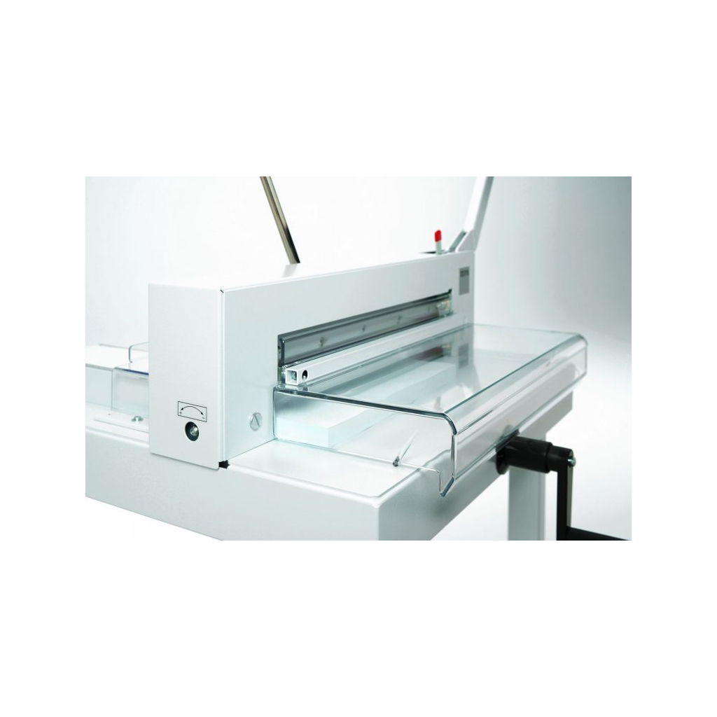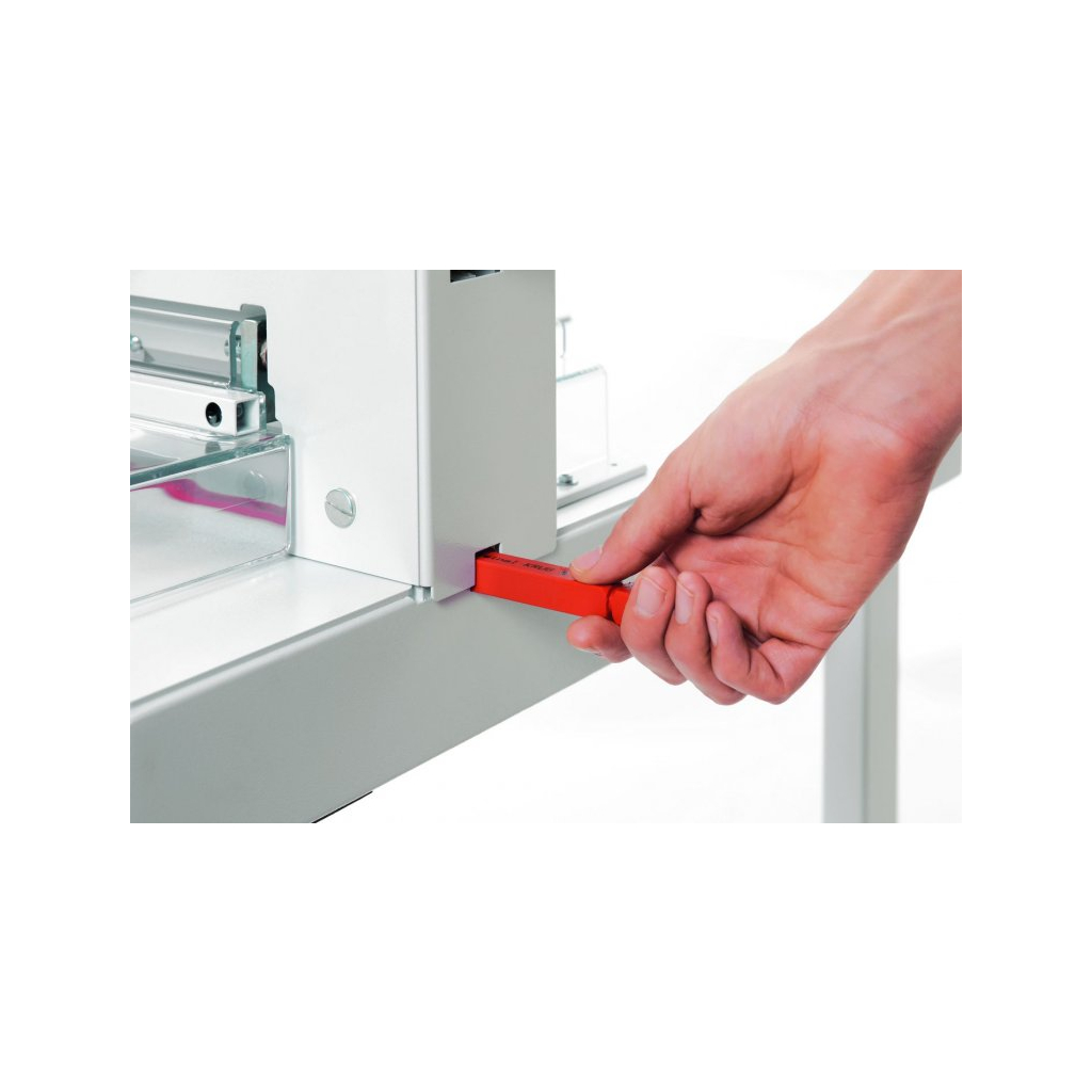 Obsluha stroje vám nezabere ani 5 minut. Stroj položte na stabilní a dostatečně pevný povrch. Páku zvedněte do horní polohy. Tím se uvolní přední ochranný kryt a místo pod nožem. Vložte pod nůž stoh papíru, který chcete řezat. Ujistěte se, že je papír přitisknutý k zadní i boční straně dorazu. Pomocí přítlakové páky stlačíte směrem vlevo stoh papíru, čímž jej mírně slisujete. Zavřete přední ochranný kryt. Nyní je stroj připravený k řezu. Pomocí páky proveďte řez oběma rukama. Po ořezu papíru posuňte páku zpět do horní polohy. Otočte páku přítlaku vpravo. Zvedněte přední ochranný kryt a posuňte stoh papíru dopředu pomocí dorazu. Vyjměte papír ze stroje.