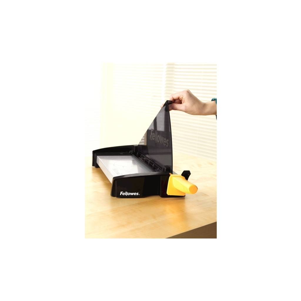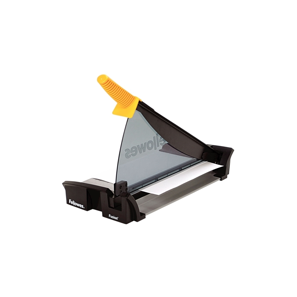 Páková řezačka Fellowes Fusion A4 je skvělým pomocníkem v kanceláři i domácnosti pro občasné řezání dokumentů na přesné rozměry. Maximální tloušťka řezu je 12 listů papíru (70 g). Listy seříznete pomocí ručního přítlaku na řeznou páku. Kovová základna disponuje protiskluzovými nožičkami, které zabrání nechtěnému posunu přístroje při používání. Po stranách stroje se nachází úchyty, které usnadňují přenášení řezačky. Kryt nože zajistí naprostou bezpečnost při práci i přepravě. Zásluhou vodícího pravítka pro všechny velikosti a posuvného úhelníku se vám podaří úspěšně seříznout dokument hned na první pokus.