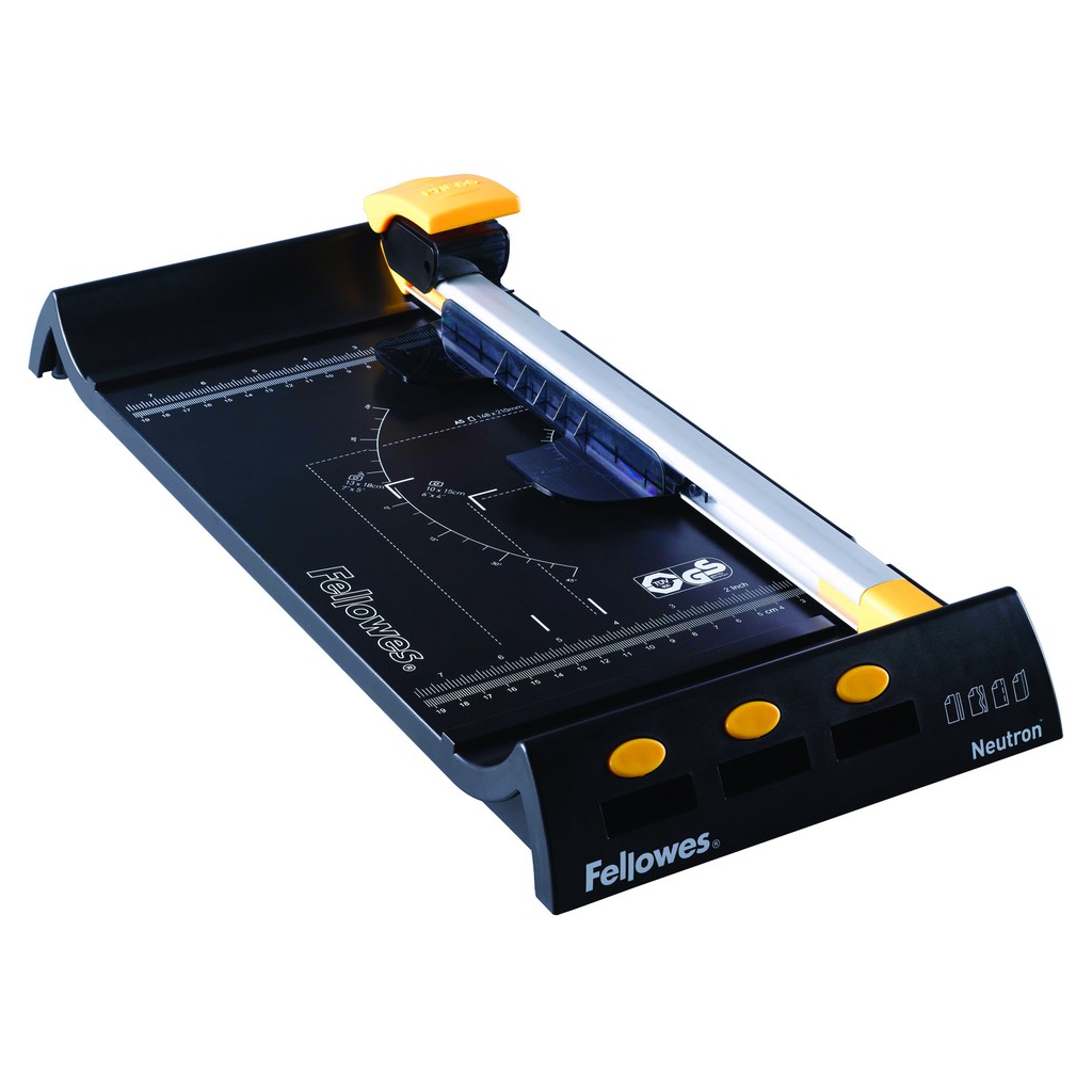 Kotoučová řezačka Fellowes Neutron A4 je praktickým pomocníkem v kanceláři pro příležitostné řezání dokumentů. Je vhodná pro menší příležitostní zatížení. Potřebujete-li ořezat papírový dokument na přesné rozměry, je řezačka ideální volbou. Tento model umožní ořezat najednou až 8 listů papíru s maximálním formátem A4. Listy seříznete tahem řezné hlavy. Nemusíte mít obavy z řezného nože, možnému zranění zabrání jeho bezpečnostní kryt.