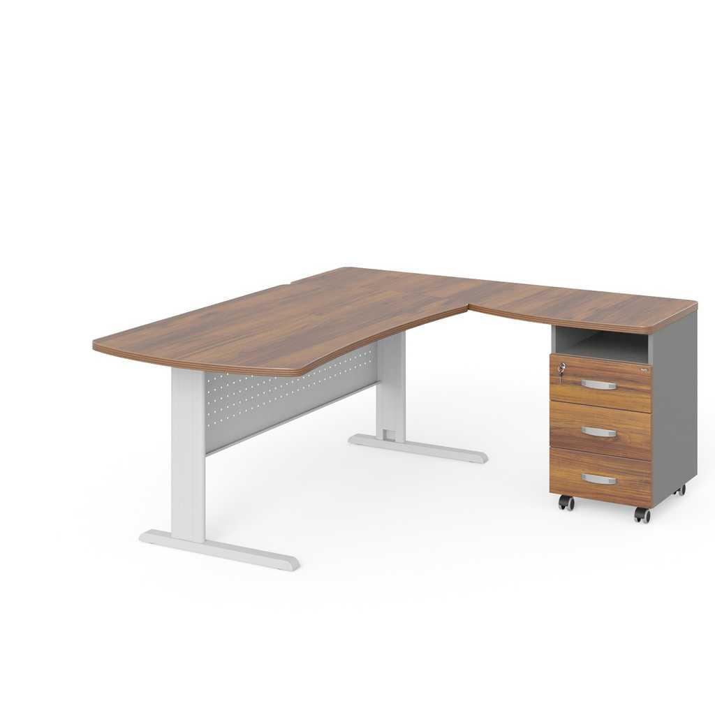 Rohové místo se skládá z pracovní desky ve tvaru L a z kontejneru, který je umístěn na kolečkách. Ten obsahuje celkem 3 zásuvky s centrálním zamykáním.