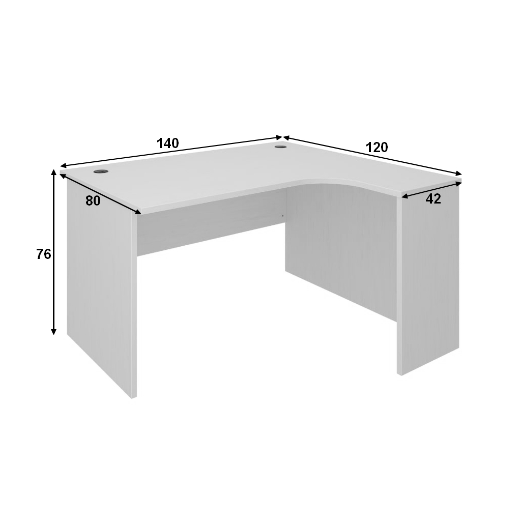 Celkové rozměry desky stolu jsou 140 × 120 cm, nabízí tedy spoustu místa na vše, co budete při práci potřebovat.