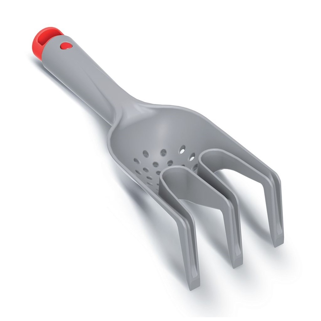 Tento kultivátor oceníte při práci na záhonu. Jeho 3 hroty jsou ideální na kypření půdy nebo zbavování se plevele. Zároveň má ale prohlubeň s cedníkem, kterou můžete využít k setí semen, která pak vidlicí rovnou zaoráte.