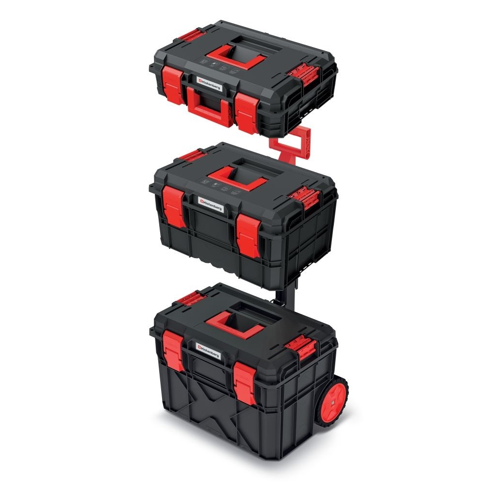 Jste profesionál, který ke své práci potřebuje bohatý arzenál nářadí a součástek? Pak zpozorněte – tyto modulární kufry vám umožní mít vždy s sebou vše, co potřebujete. Bytelná konstrukce z kvalitních polymerů unese až 50 kg (platí pro každý kufr zvlášť) a je dost pevná na to, abyste ji mohli využít i coby provizorní stupínek nebo pracovní desku.