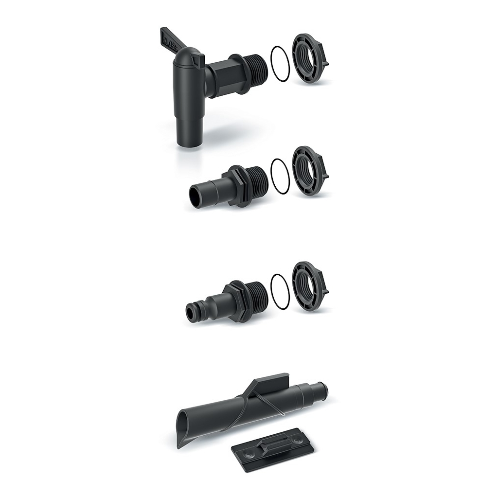Sada je určena k vypouštění nadbytečné vody ze sudu. Obsahuje kohoutek (včetně matice a těsnění), přípojku, rychlospojku, koncovku hadice a její držák.