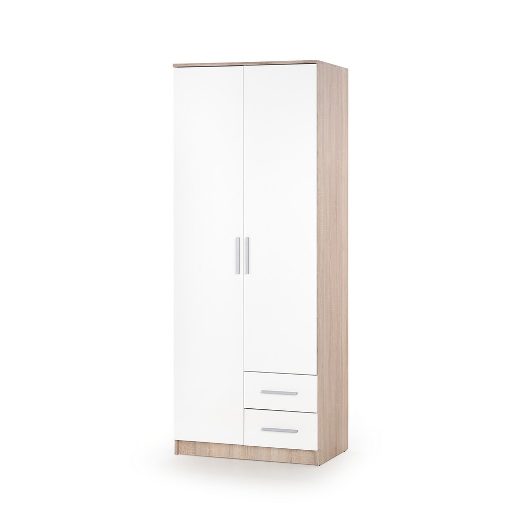 Konstrukce šatní skříně je vyrobená z laminovaných desek ve vysokém lesku s ABS hranou. Dodáváme ji ve 3 barevných provedeních - v bílé, dubu sonoma a v kombinaci bílé s dubem sonoma.