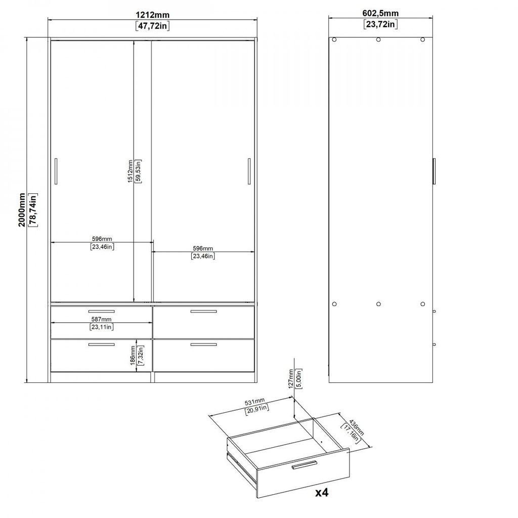- Rozměry: délka 121,2 cm, hloubka 60,3 cm, výška 200 cm