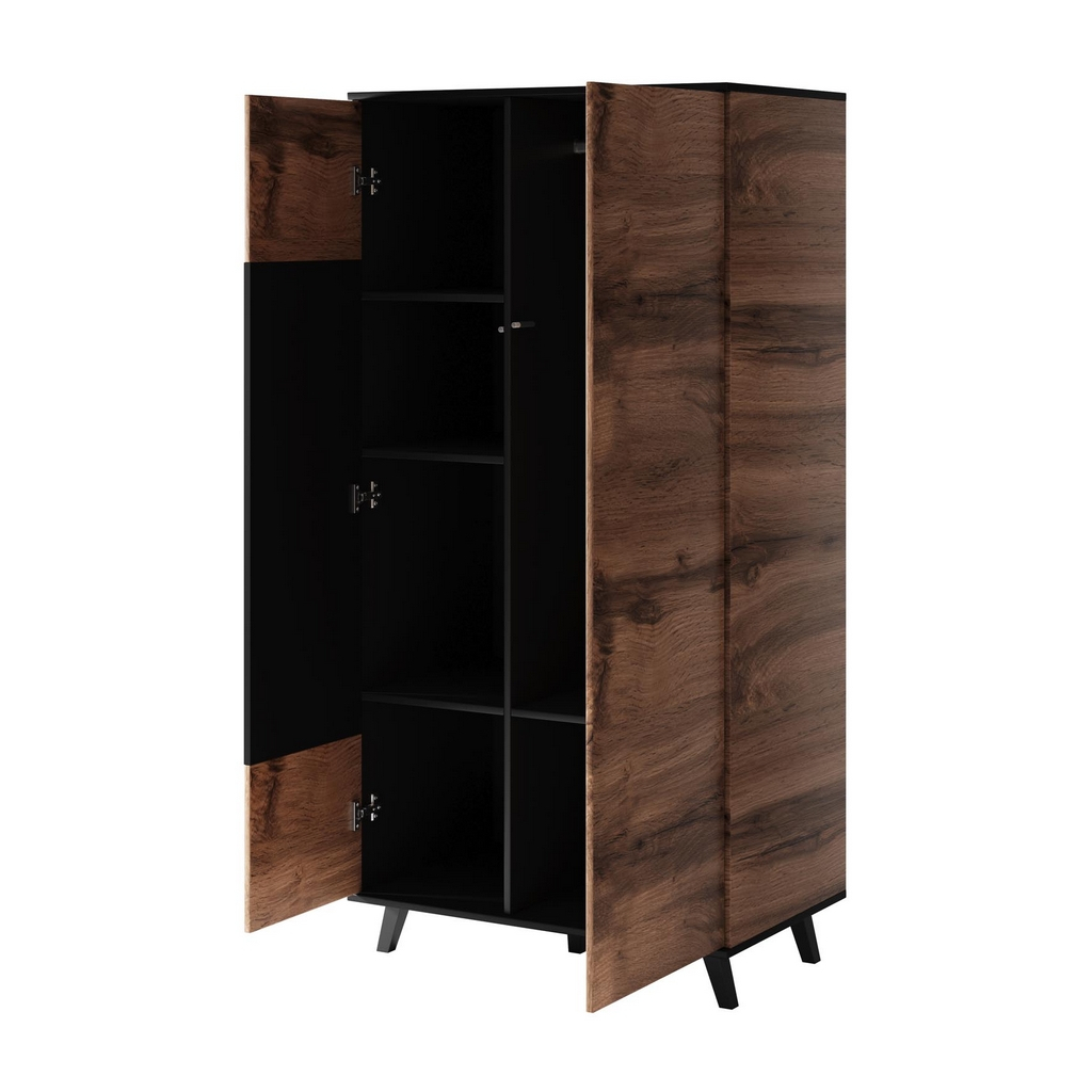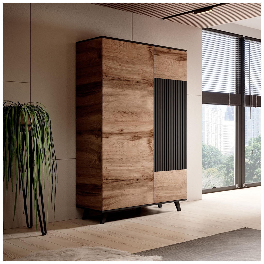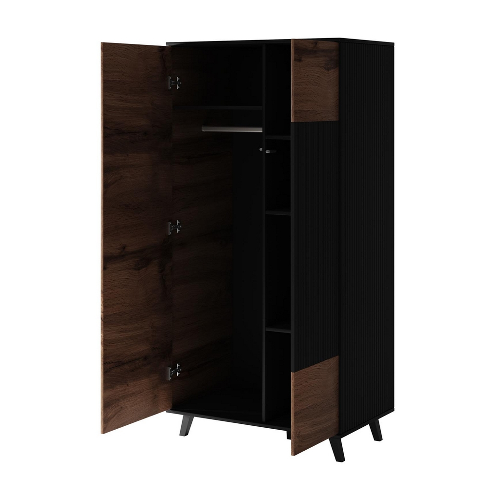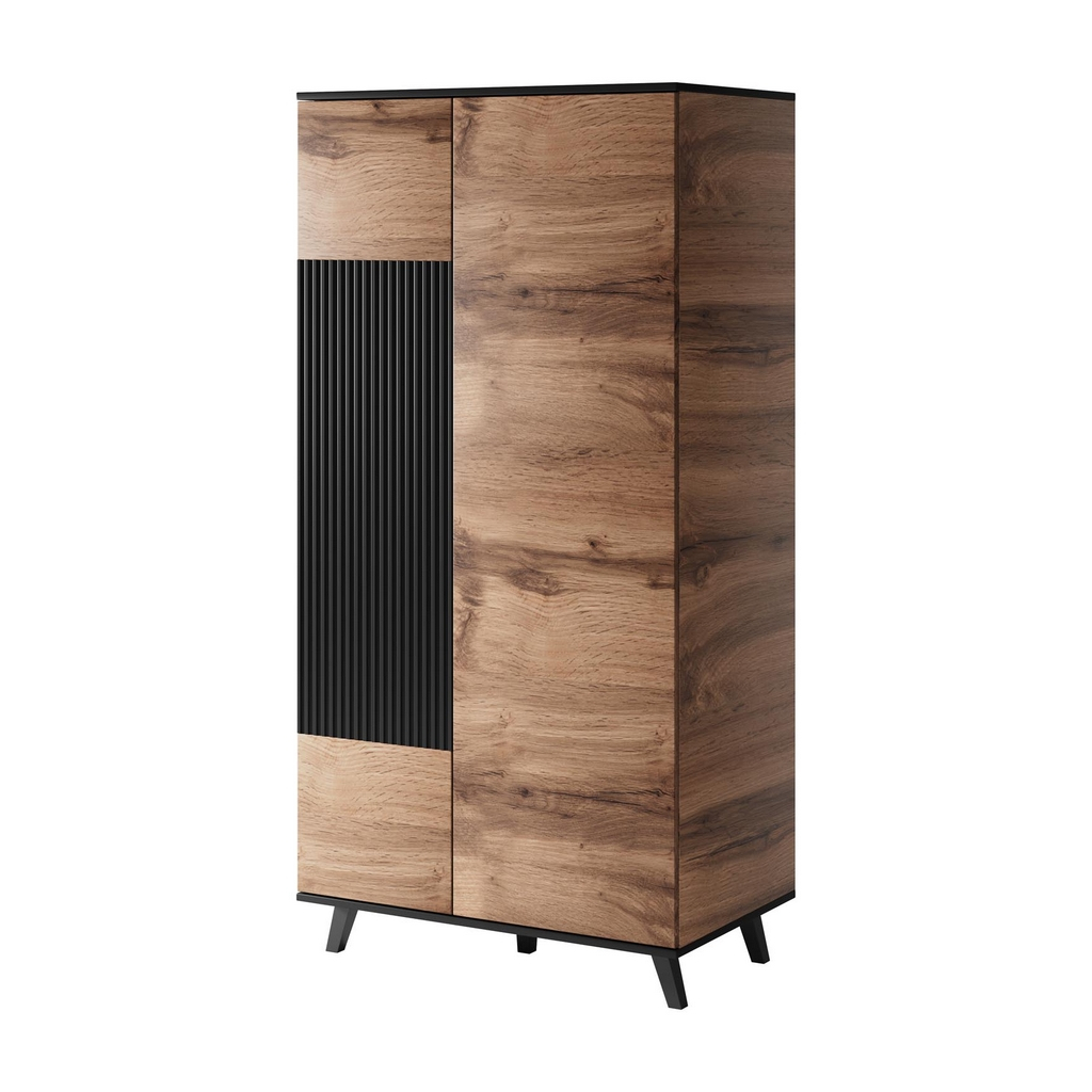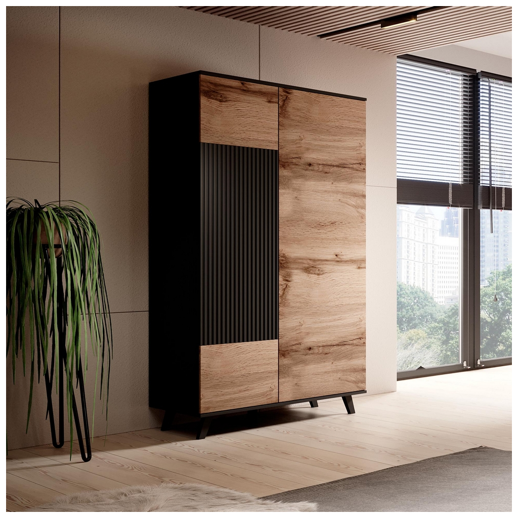 Skříň je z kombinace dýhovaného dřevovlákna a dřevotřísky s černým polypropylenem. Společně tyto materiály tvoří vkusný designový celek.