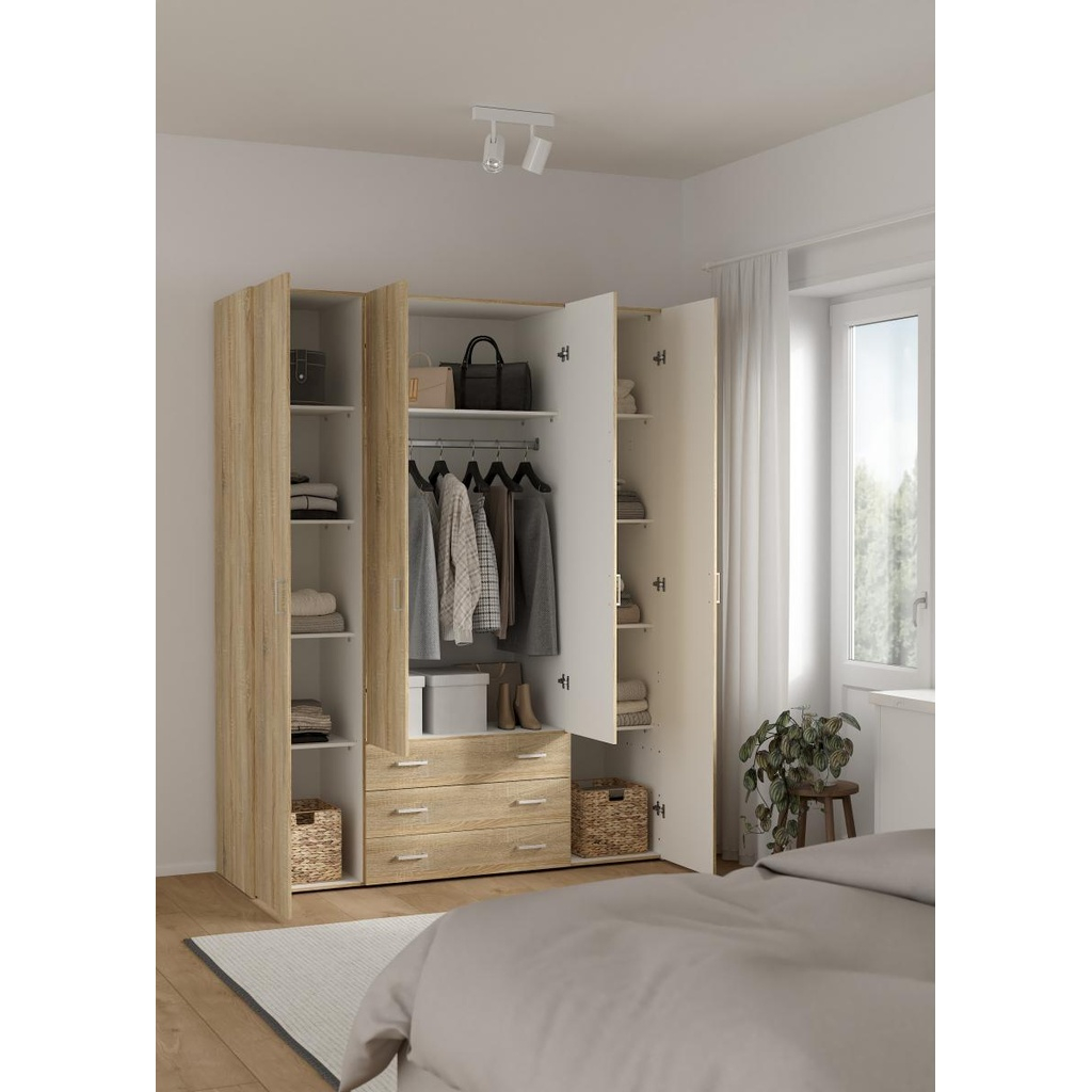 Šatní skříň Sid nabízí praktické a prostorné úložiště, které snadno zapadne do každé místnosti. Díky kvalitnímu dřevěnému provedení je nábytek nejen odolný, ale také jednoduchý na údržbu. Velkorysý prostor uvnitř skříně vám umožní uspořádat oblečení i další osobní věci přehledně a pohodlně.