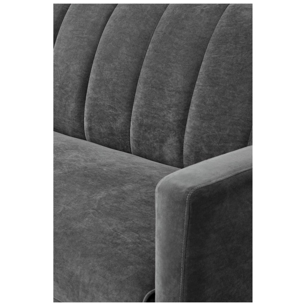 Pohovka je čalouněná sametovou látkou, která je velice příjemná. Stojí na čtyřech ocelových nohách s černou práškovanou povrchovou úpravou. Pohovka je rozkládací, poskytne vám tak i více prostoru.