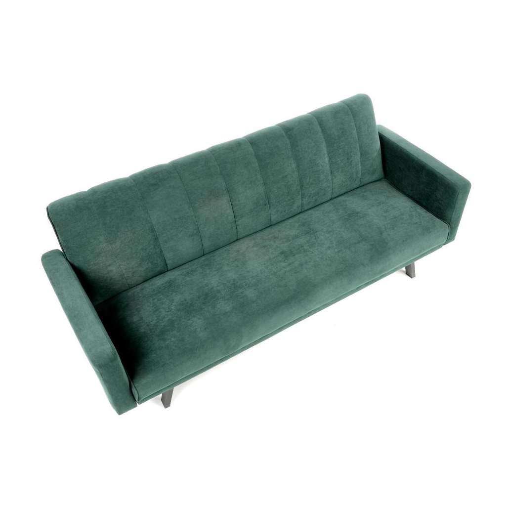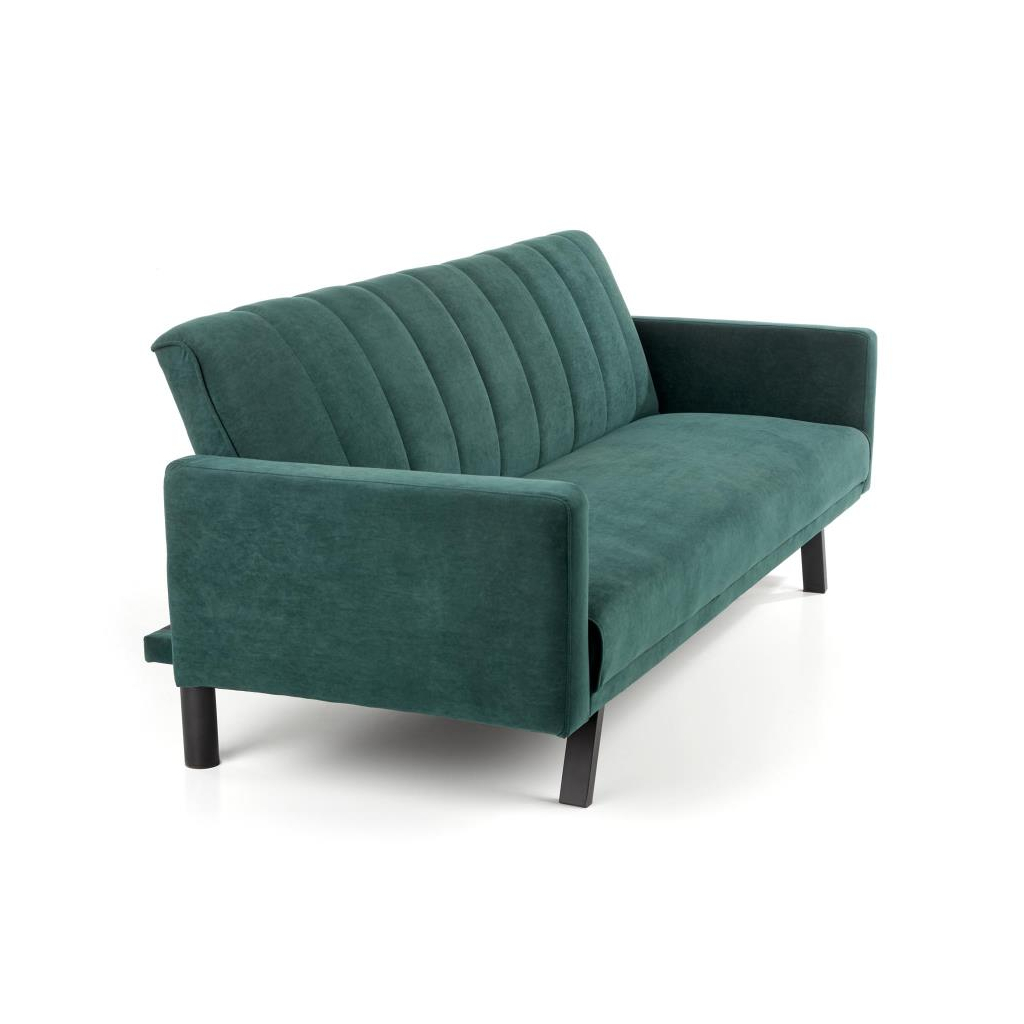 Pohovka je čalouněná sametovou látkou, která je velice příjemná. Stojí na čtyřech ocelových nohách s černou práškovanou povrchovou úpravou. Pohovka je rozkládací, poskytne vám tak i více prostoru.
