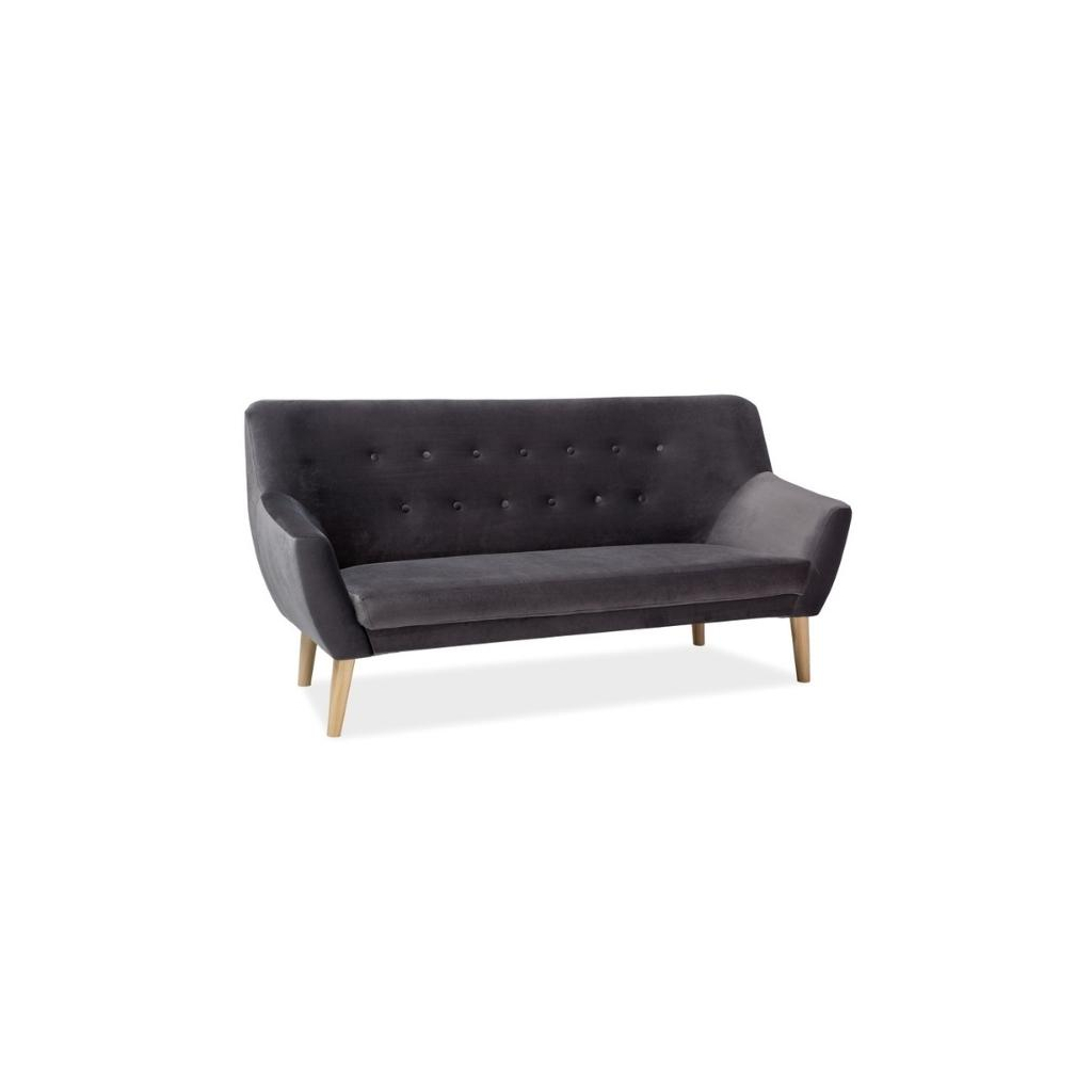 Pohovka je čalouněná sametovou látkou, která je ozdobená knoflíky našitými na opěráku zad. Látka je jedním z nejoblíbenějších potahových materiálů, nejen díky elegantnímu vzhledu, ale také protože její vlastnosti oceníte v zimě i létě.