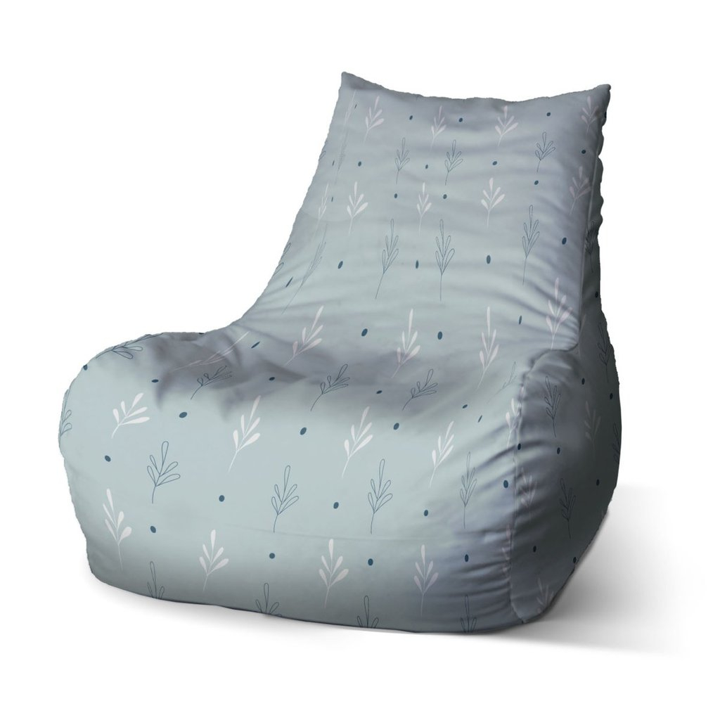 Sedací vak Bean modré a bílé lístky, šedá