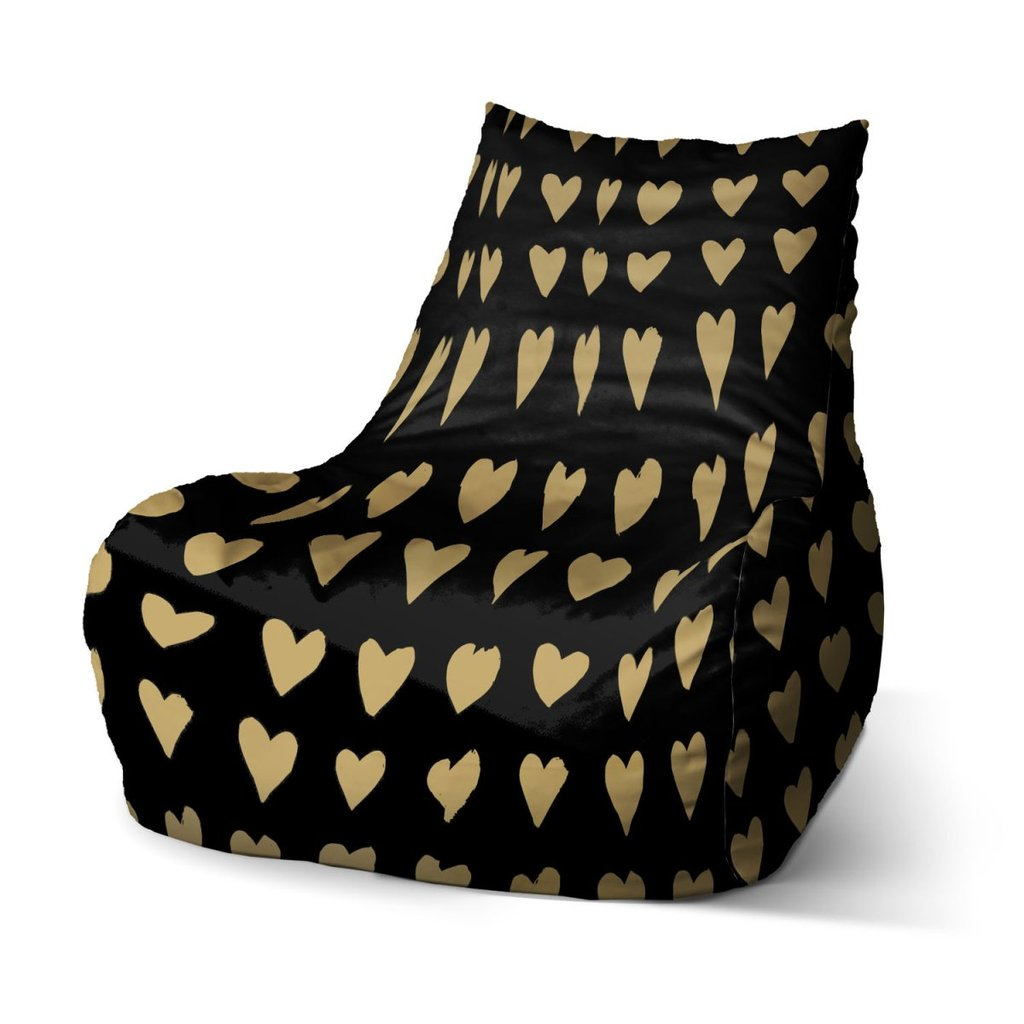 Sedací vak Bean zlatá srdíčka, zlatá / černá