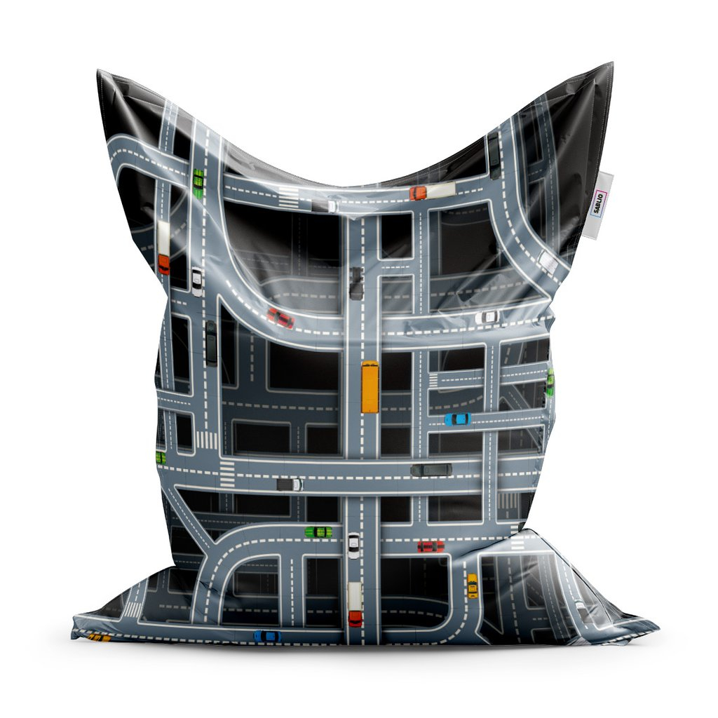 Sedací vak Classic dětská autodráha - dětský, šedá / černá