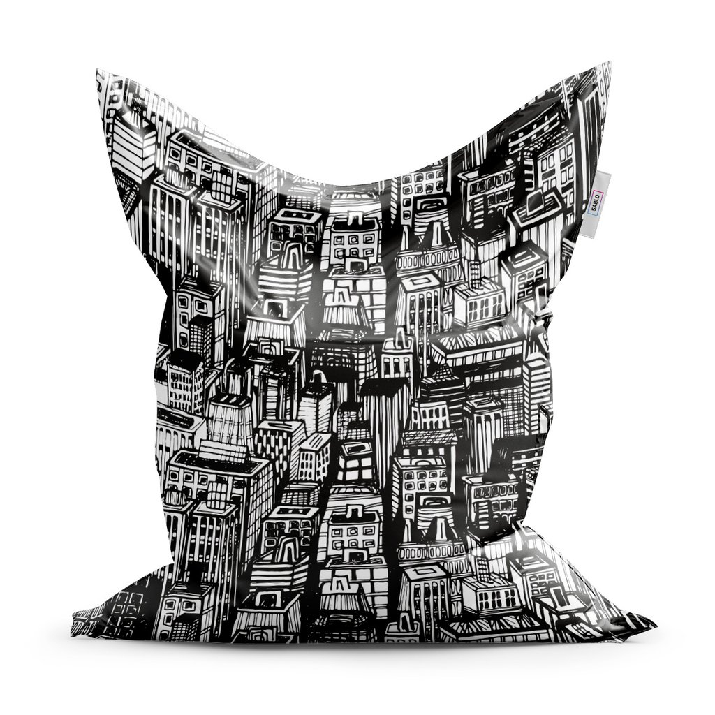 Sedací vak Classic kreslené mrakodrapy - dětský, černá / bílá