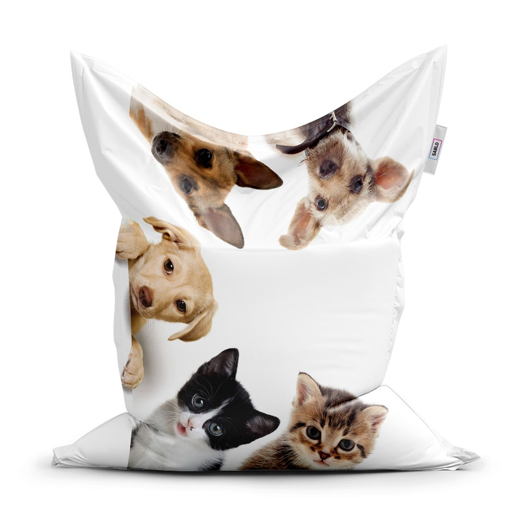 Sedací vak Classic štěňátka a koťátka - dětský, béžová / bílá