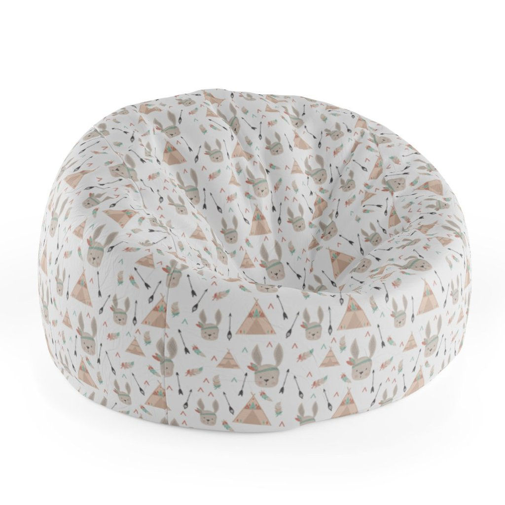 Sedací vak Cocoon zajíci u stanu, bílá / béžová