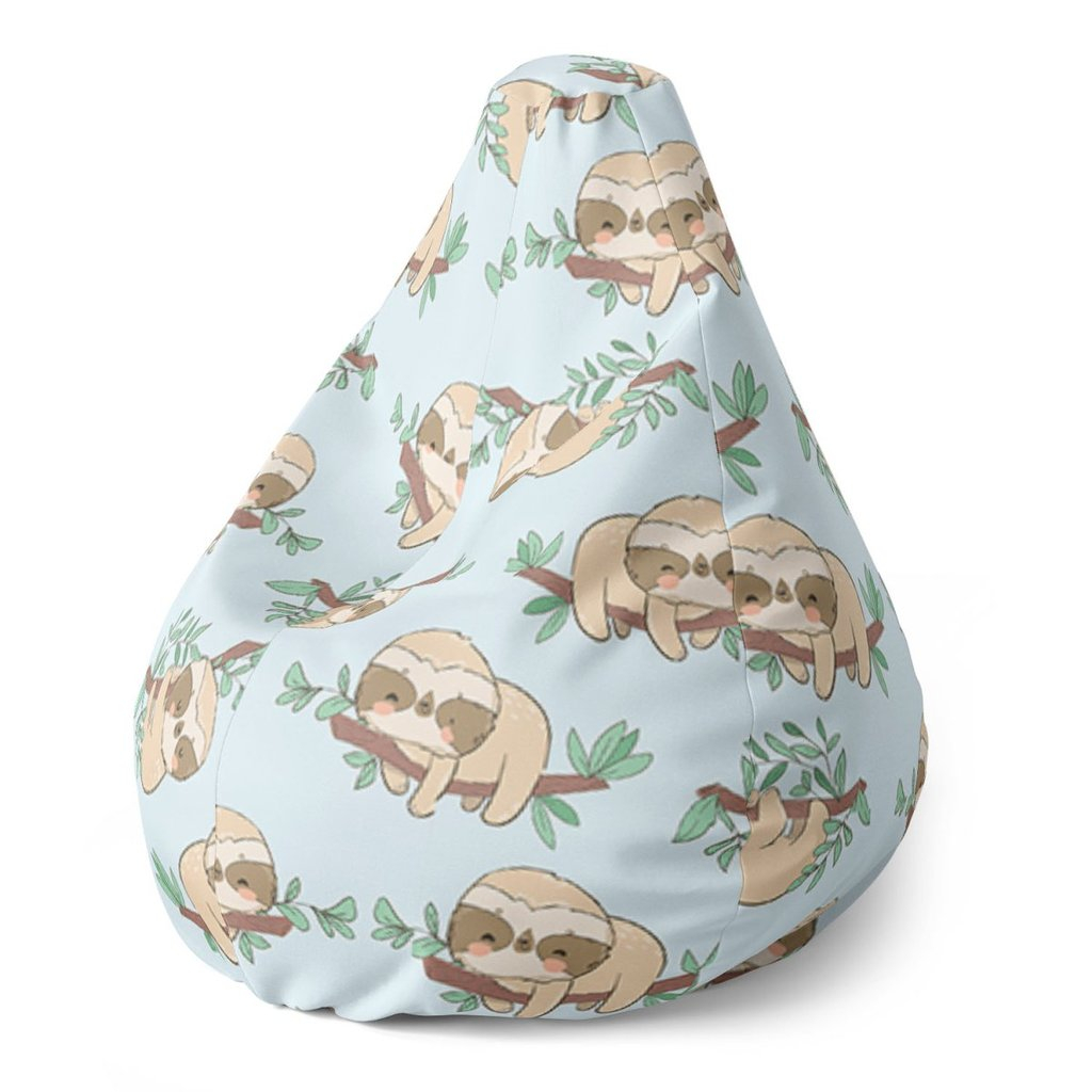 Sedací vak Pear lenochodi na větvi - dětský, modrá / béžová