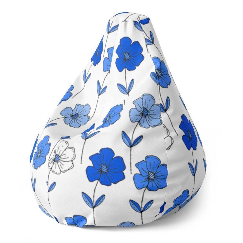 Sedací vak Pear modré květiny - dětský, bílá / modrá