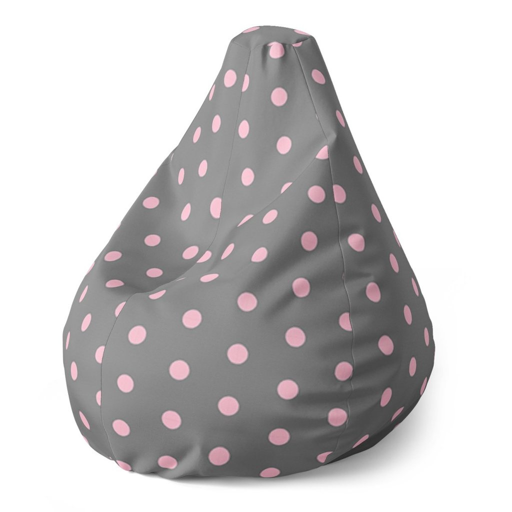 Sedací vak Pear růžové puntíky na šedé, šedá / růžová
