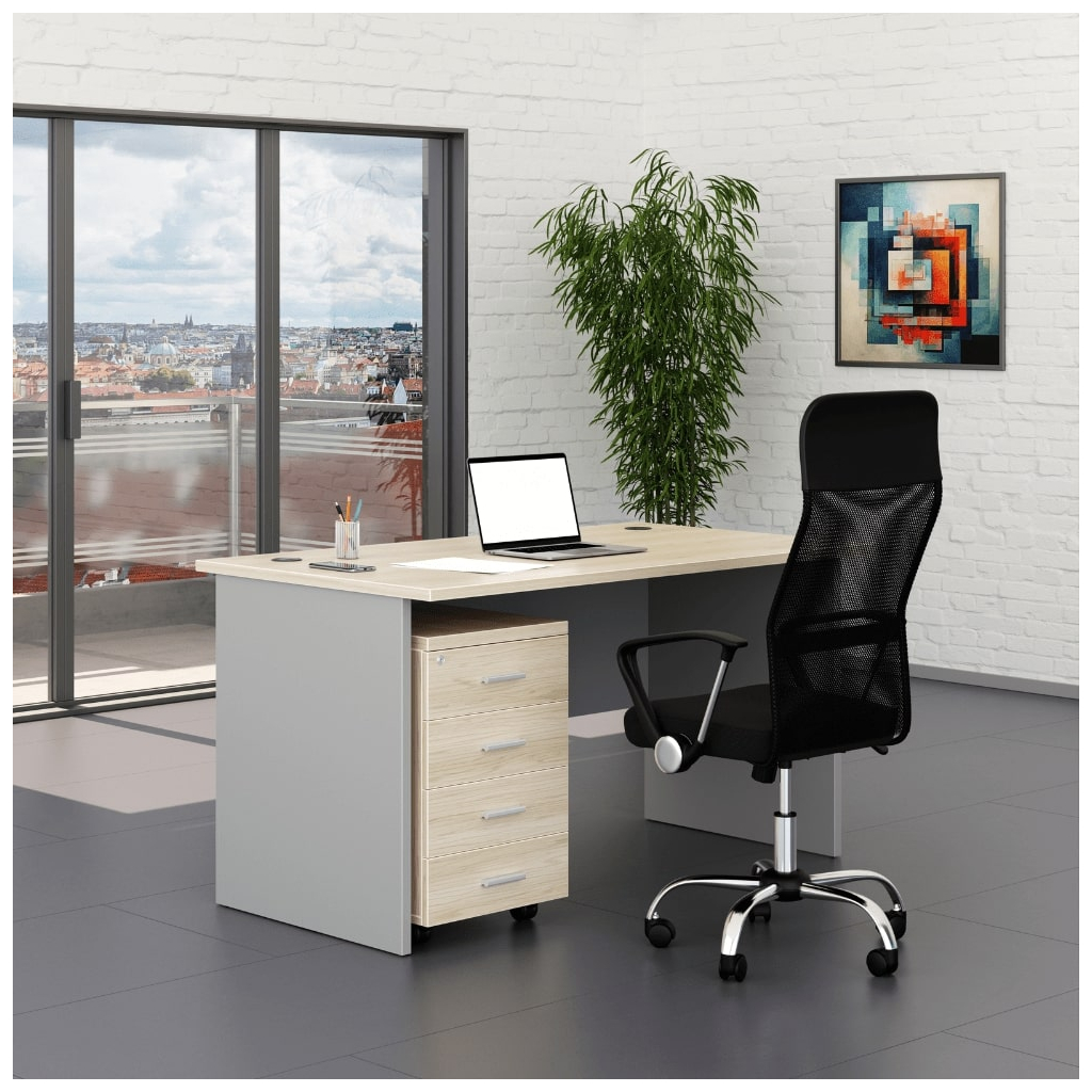 Sestava kancelářského nábytku SimpleOffice 1, 140 cm, dub světlý / šedá