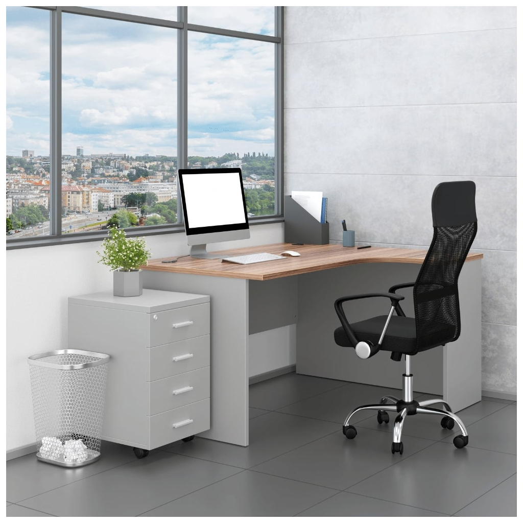 Sestava kancelářského nábytku SimpleOffice 2, 140 cm, pravá, šedá / ořech vlašský