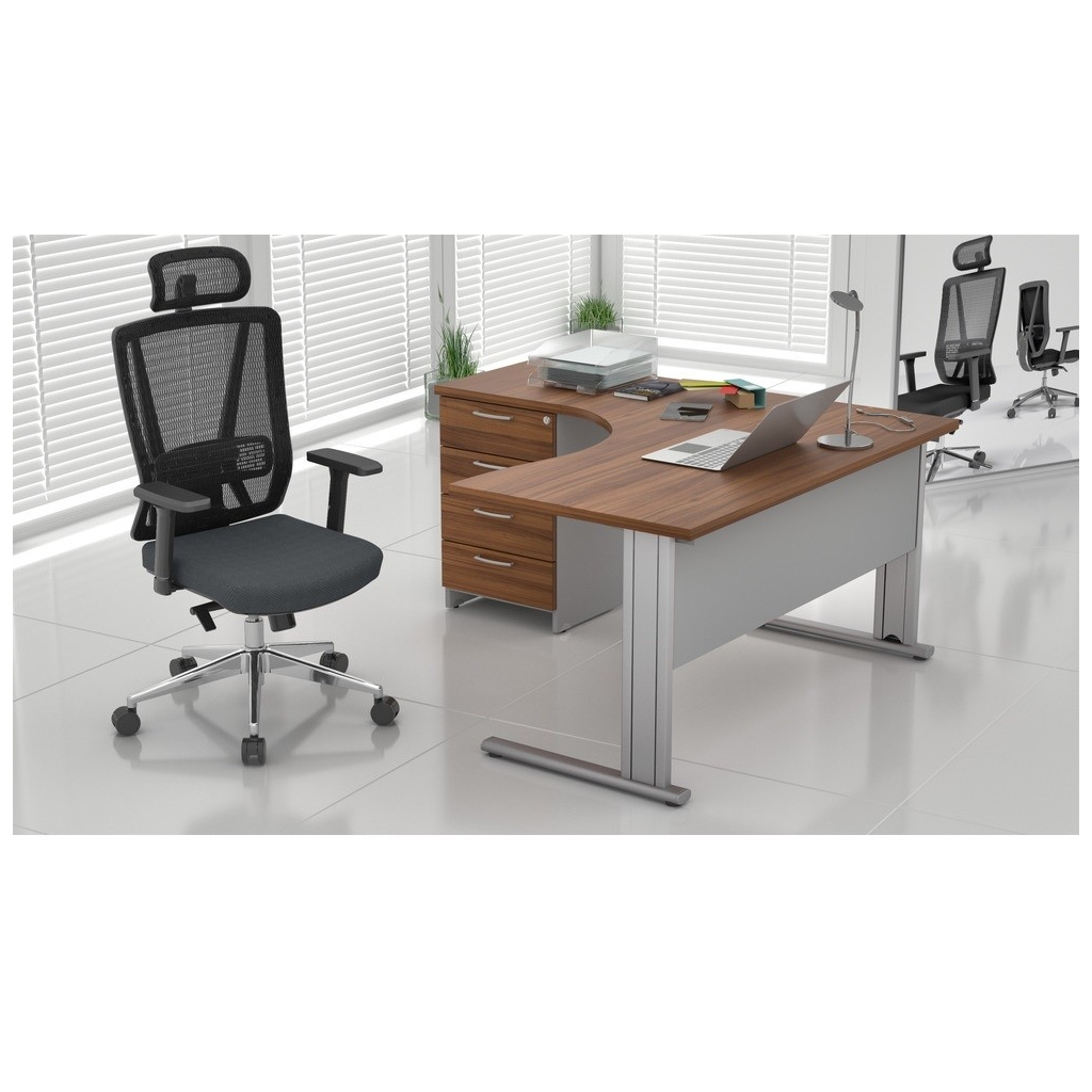 Nábytková sestava Visio LUX 7 se skládá z rohového kancelářského stolu a z přístavného kontejneru.