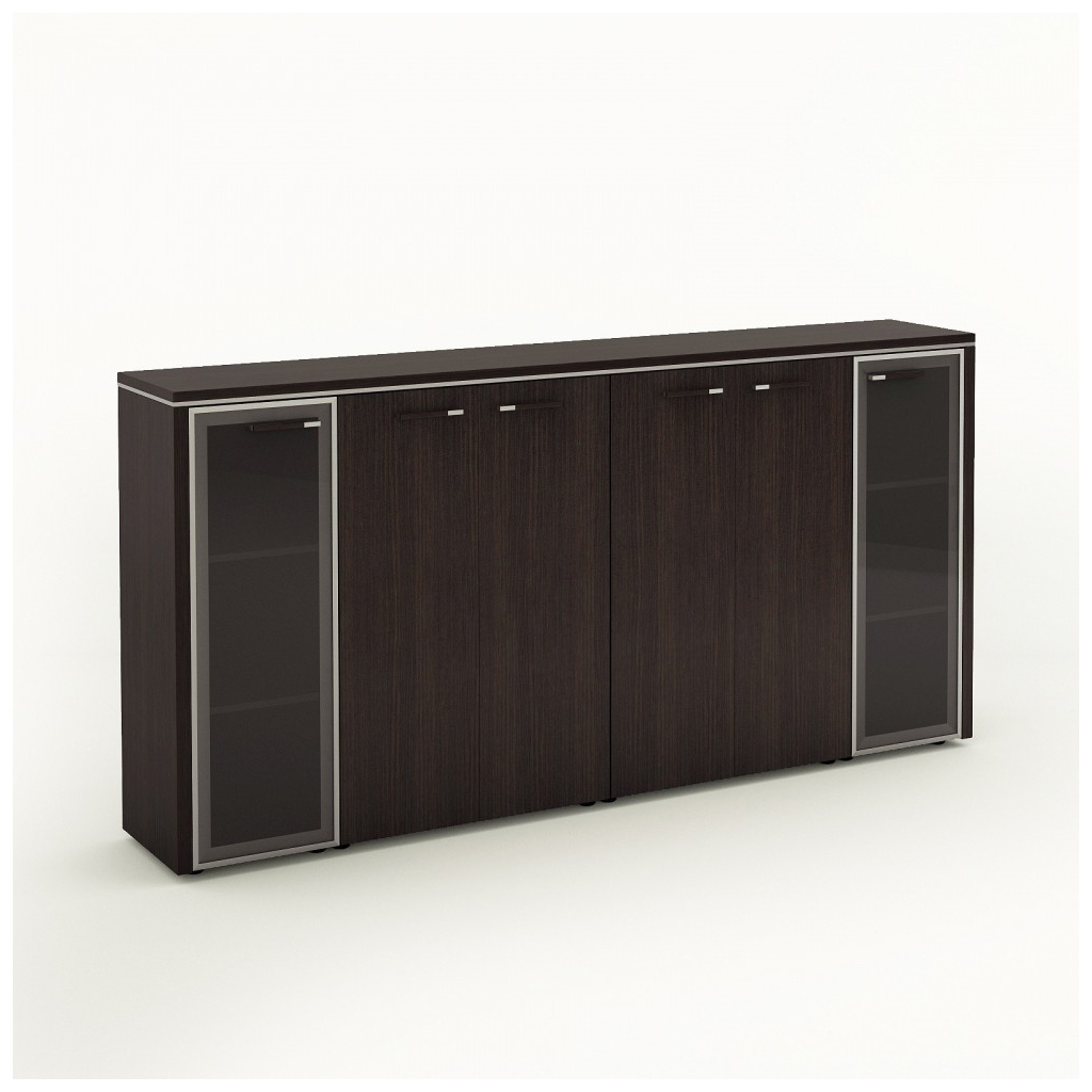 Sestava skříní TopOffice 3 se skládá ze dvou středních širokých skříní, které jsou vybaveny dřevěnými dveřmi a ze dvou středních úzkých skříní, které disponují skleněnými dveřmi. Ke skříním dodáváme také obložení pro horní i boční strany ve vybraném dezénu.