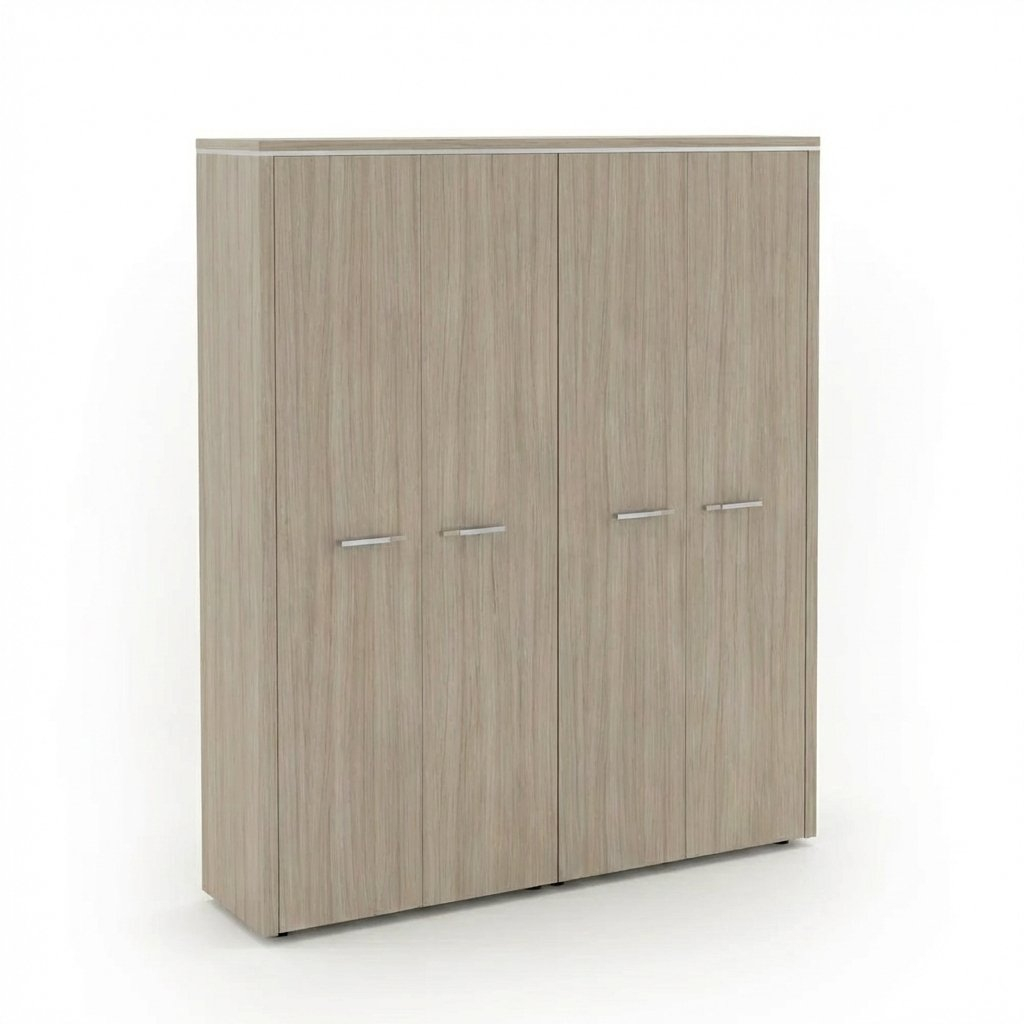 Sestava skříní TopOffice 7 se skládá ze dvou vysokých širokých skříní, které jsou vybaveny dřevěnými dveřmi. Ke skříním dodáváme také obložení pro horní i boční strany ve vybraném dezénu.