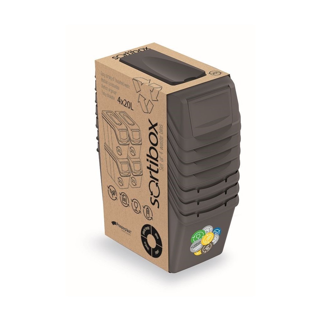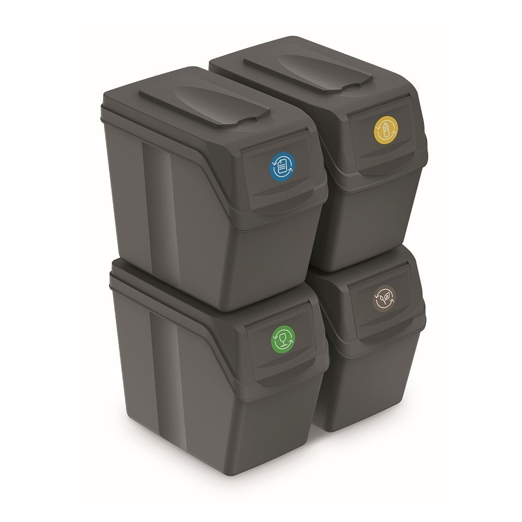Set košů na tříděný odpad, 4 x 20 l, šedá