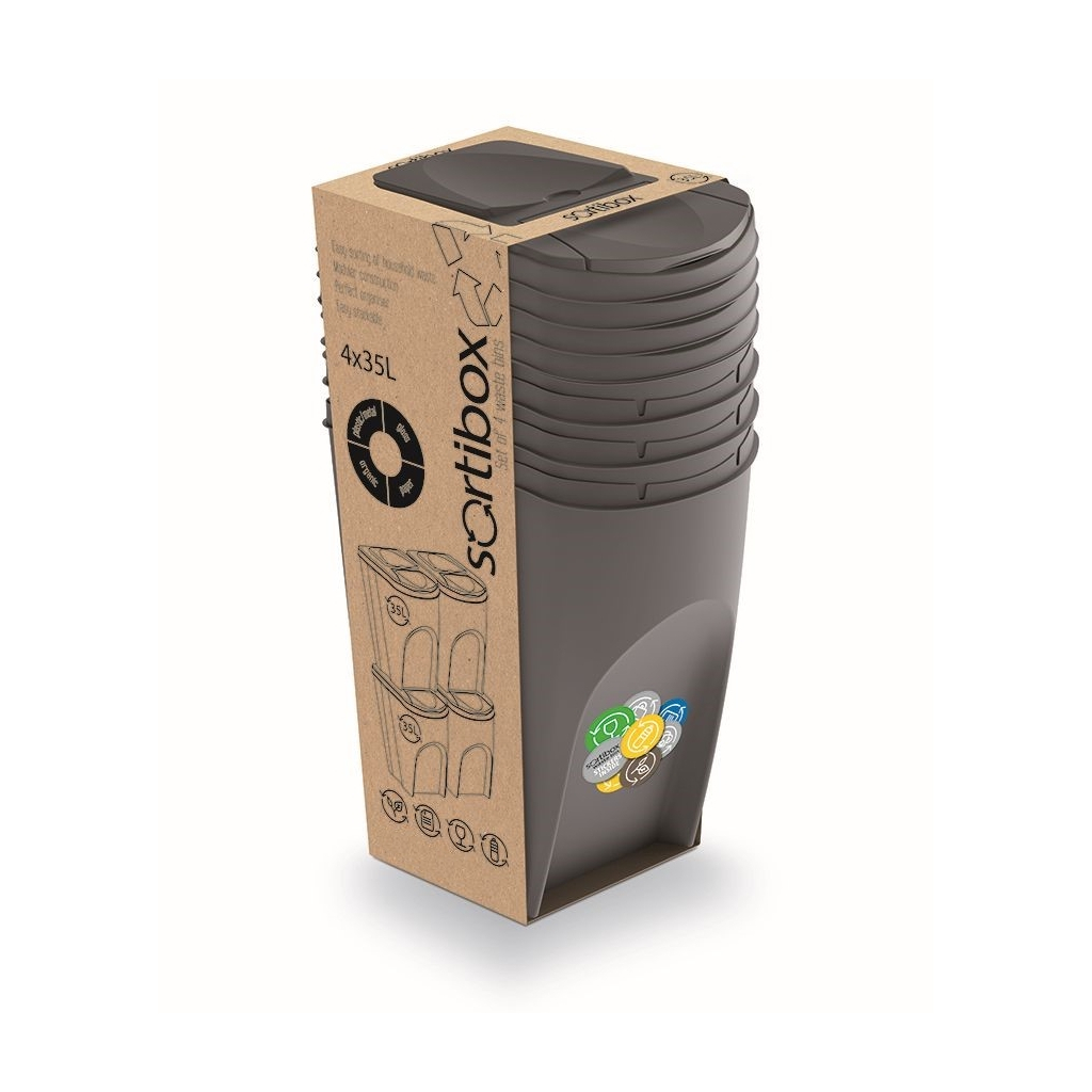Set košů na tříděný odpad, 4 x 35 l, šedá