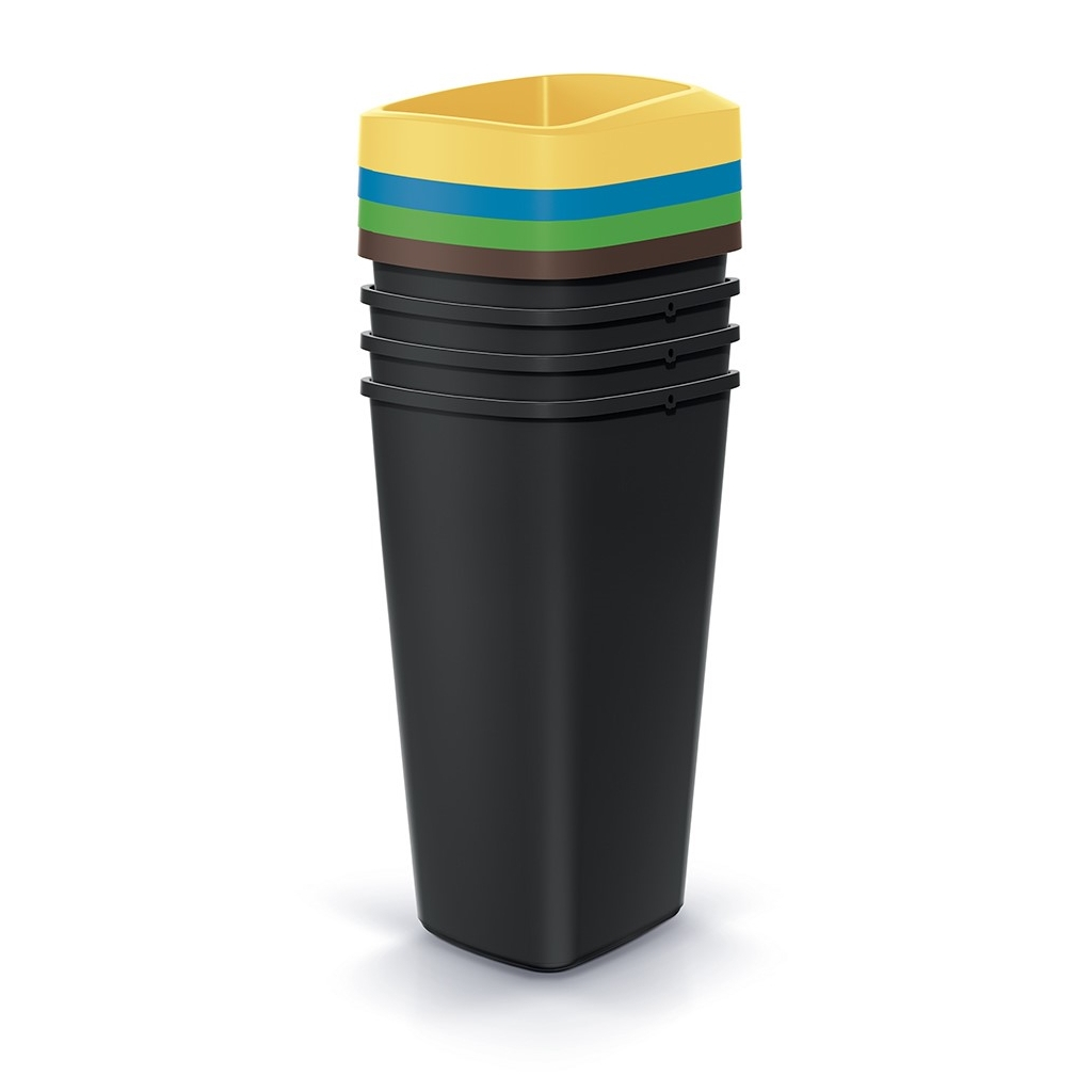 Set košů na tříděný odpad, hranaté, 4 x 25 l, barevná