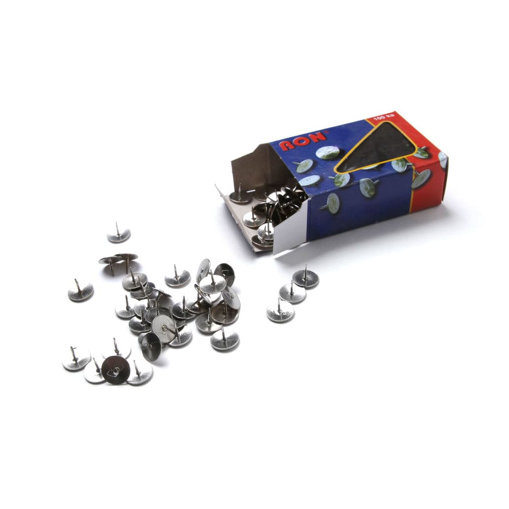V sadě je obsaženo celkem 100 kusů stříbrných napínáčků, které jsou ideální pro přichycení informací na textilní či korkový povrch tabulí nebo vitrín.