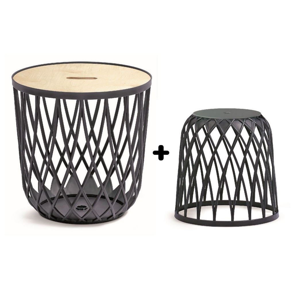 Tato souprava univerzálních košů se přímo nabízí coby posezení na terasu nebo do pergoly – větší koš s víkem poslouží jako stolek, menší koše jako sedáky o nosnosti 80 kg. Samozřejmě je ale na vás, jak se sadou naložíte. Každý z prvků můžete přeměnit v úložný prostor třeba na deky nebo dříví, ale taky na odkládací stolek či sedák.