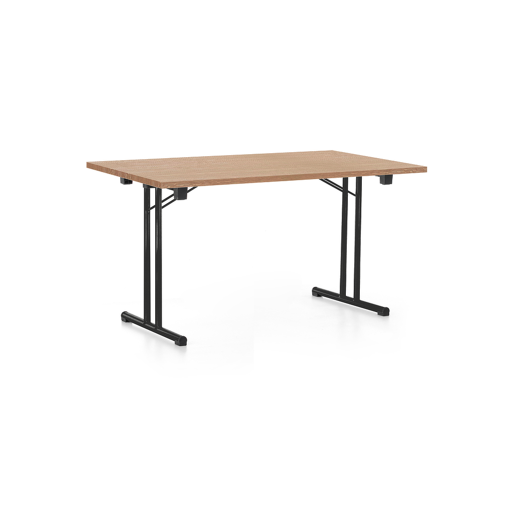 Skládací stůl 140 x 80 cm, černá podnož, dub