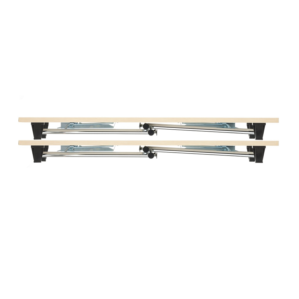 Horní deska skládacího stolu je vyrobena z laminované dřevotřísky o síle 22 mm. Stojí na stabilní kovové podnoži, která při rozložení vytvoří výšku stolu 73,2 cm.