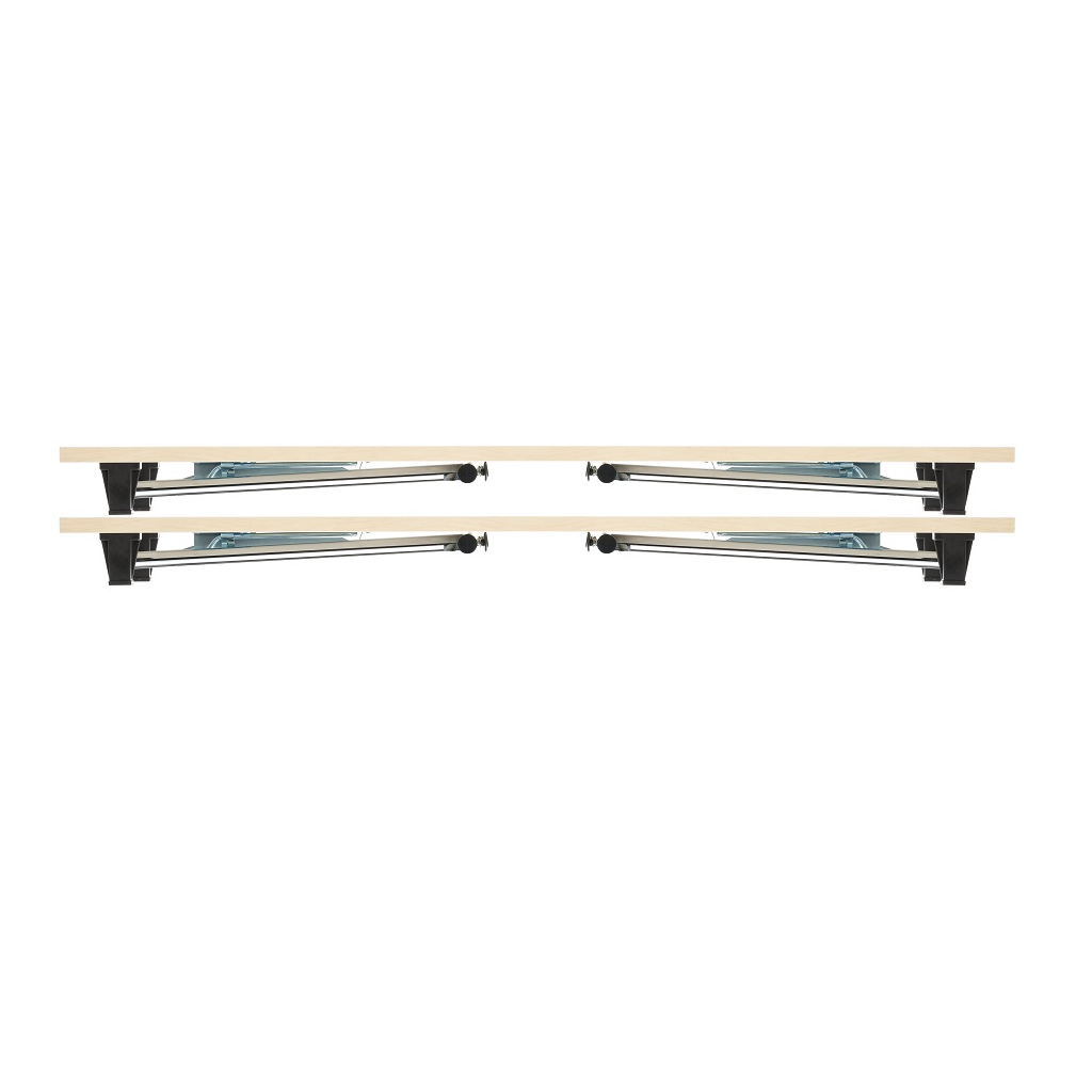 Horní deska skládacího stolu je vyrobena z laminované dřevotřísky o síle 22 mm. Stojí na stabilní kovové podnoži, která při rozložení vytvoří výšku stolu 73,2 cm.