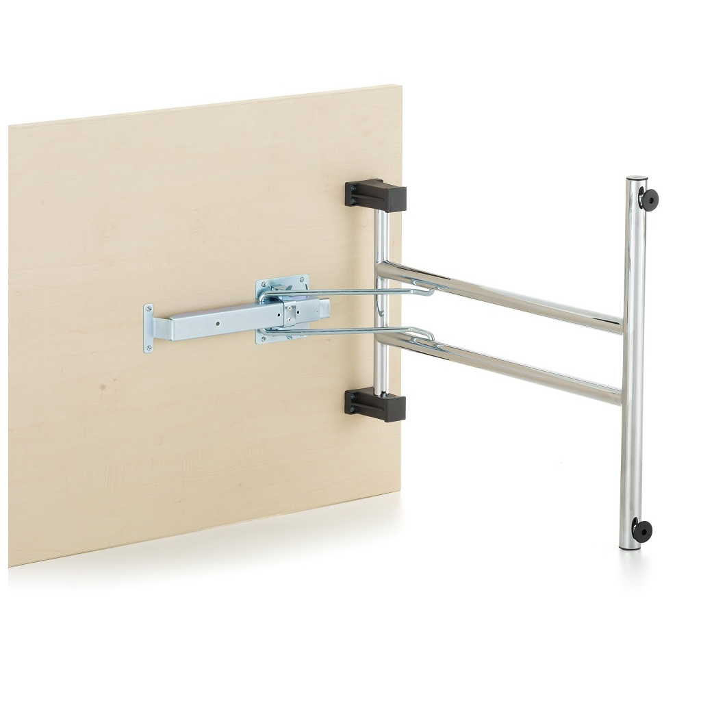 Horní deska skládacího stolu je vyrobena z laminované dřevotřísky o síle 22 mm. Stojí na stabilní kovové podnoži, která při rozložení vytvoří výšku stolu 73,2 cm.