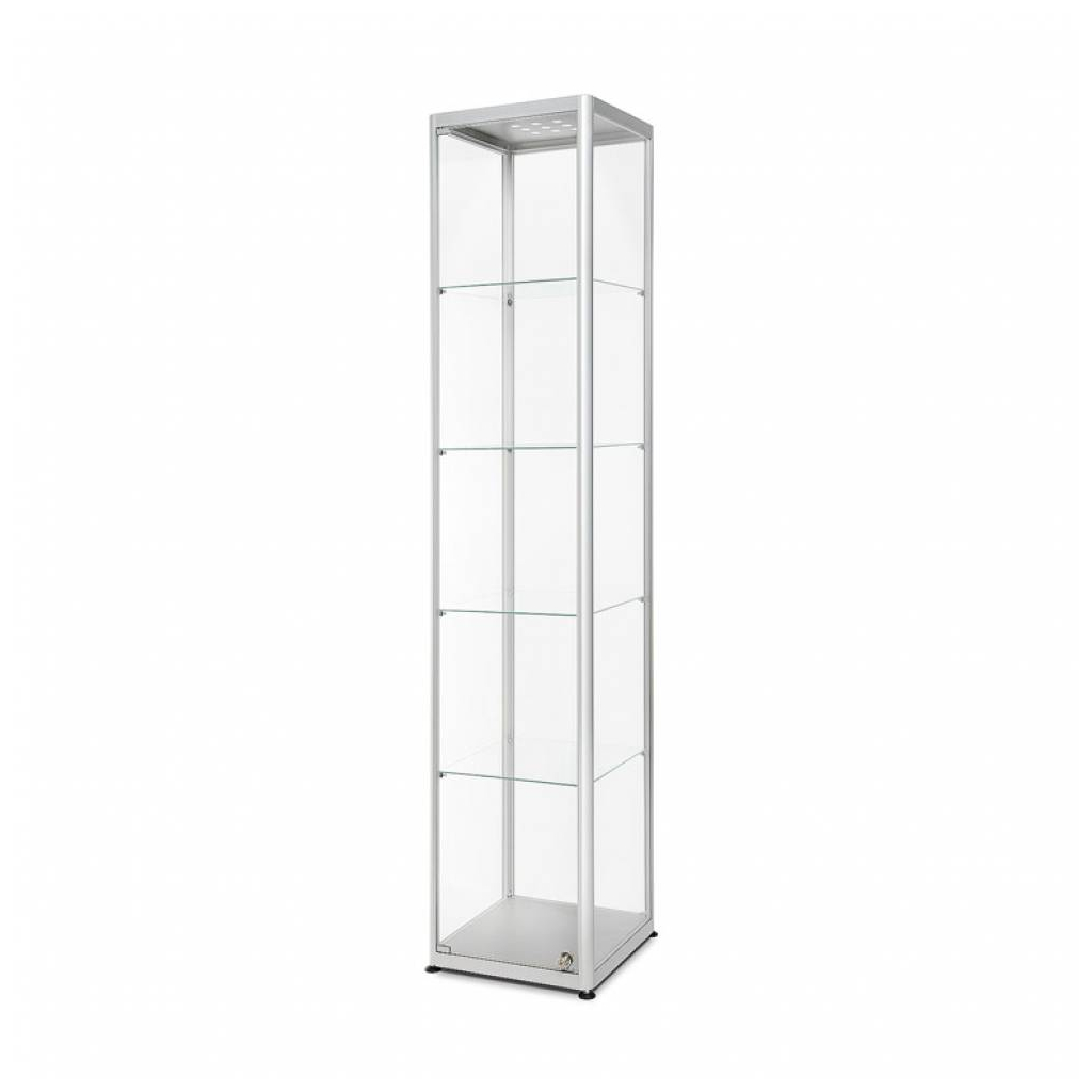 Skleněná uzamykatelná vitrína 40 x 40 x 200 cm, stříbrná