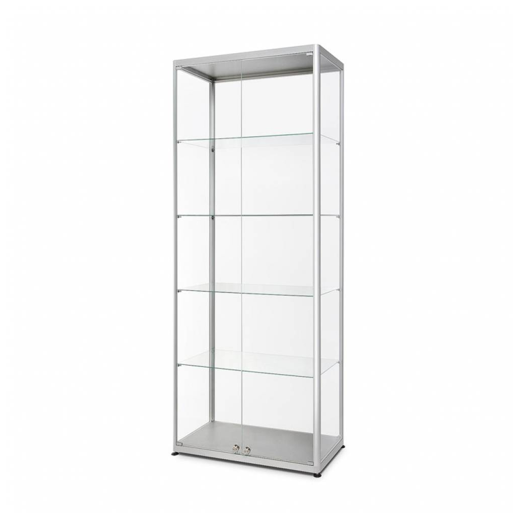 Skleněná uzamykatelná vitrína 80 x 40 x 200 cm, stříbrná