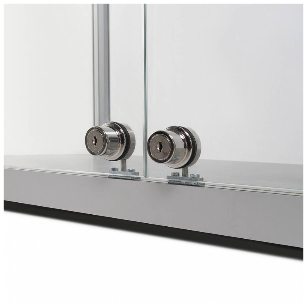O bezpečnost vloženého obsahu se není třeba obávat, protože je chráněn křídlovými dvířky ze skla a vestavěným zámkem, který zabrání nejen zneužití, ale i poškození. Celá vitrína je vyrobena z bezpečnostního skla s ESG certifikací.